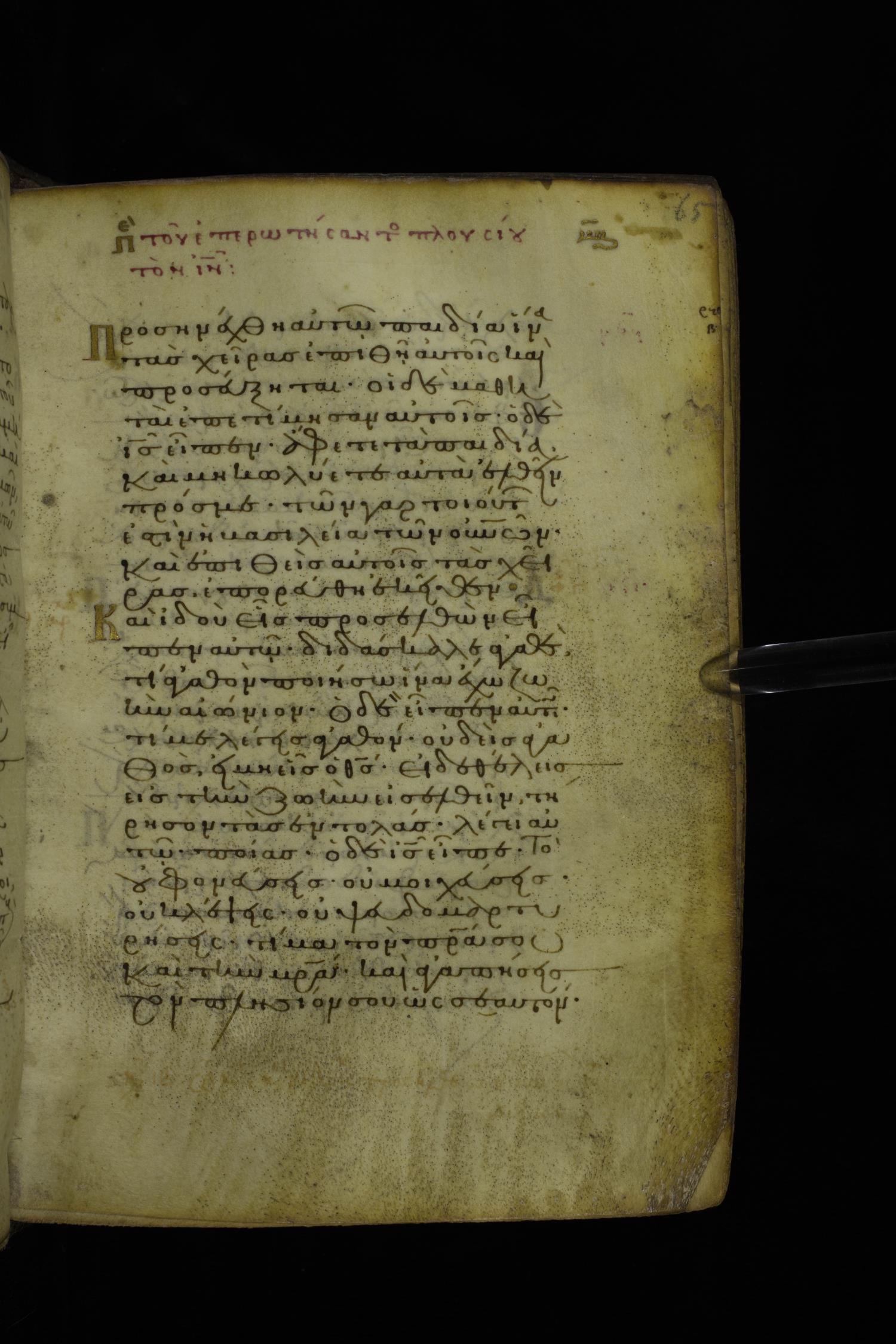 Twelfth century minuscule of the Gospel on parchment; 305 leaves, 1 column, 24 lines per column. Images were taken at the National Library of Greece in Athens.