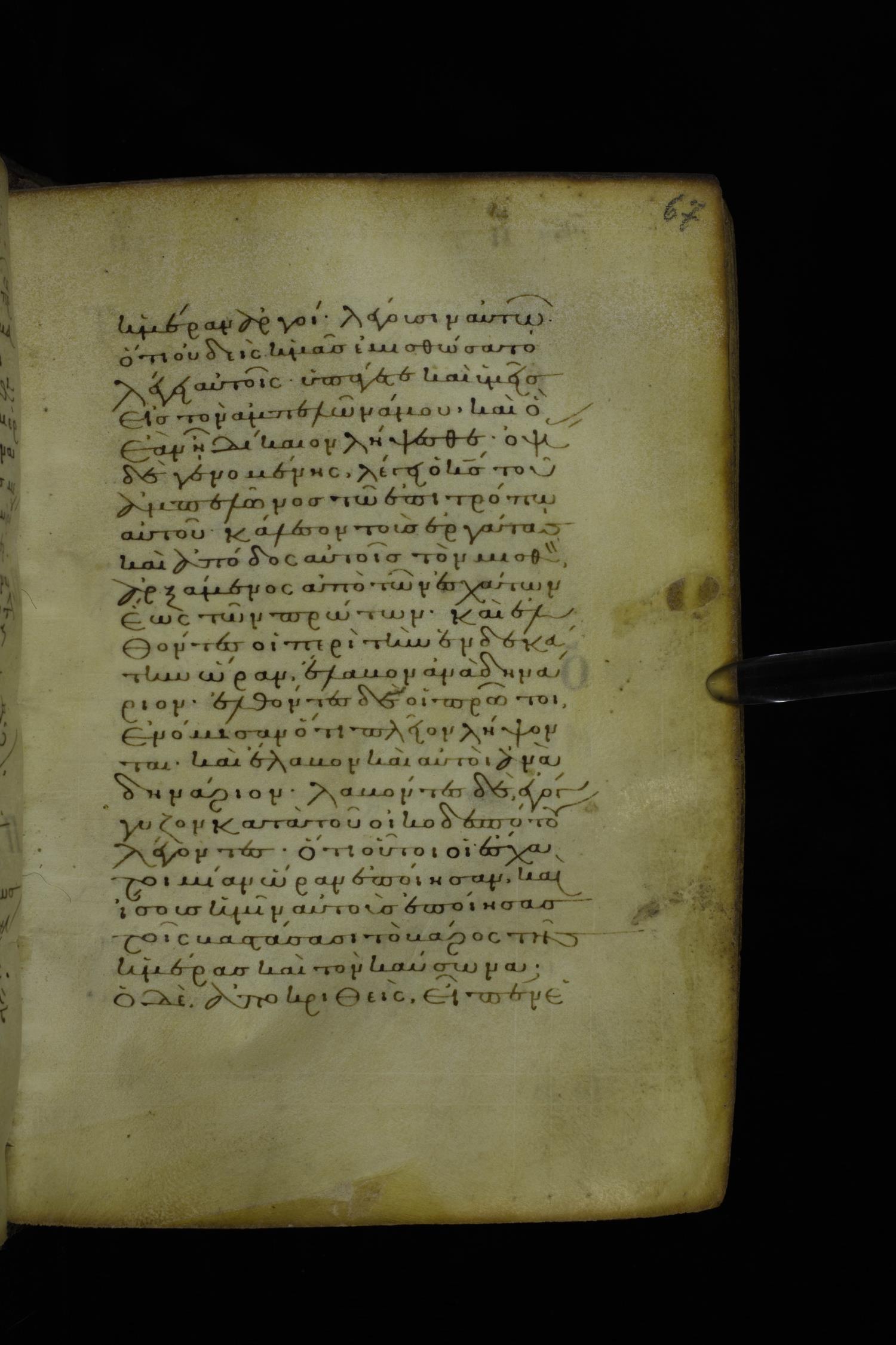 Twelfth century minuscule of the Gospel on parchment; 305 leaves, 1 column, 24 lines per column. Images were taken at the National Library of Greece in Athens.