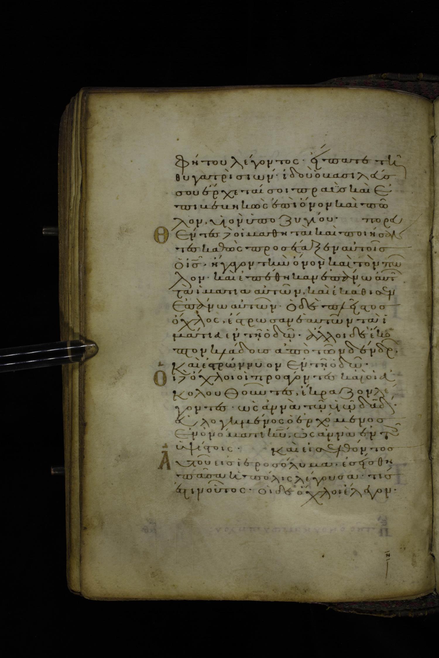 Twelfth century minuscule of the Gospel on parchment; 305 leaves, 1 column, 24 lines per column. Images were taken at the National Library of Greece in Athens.