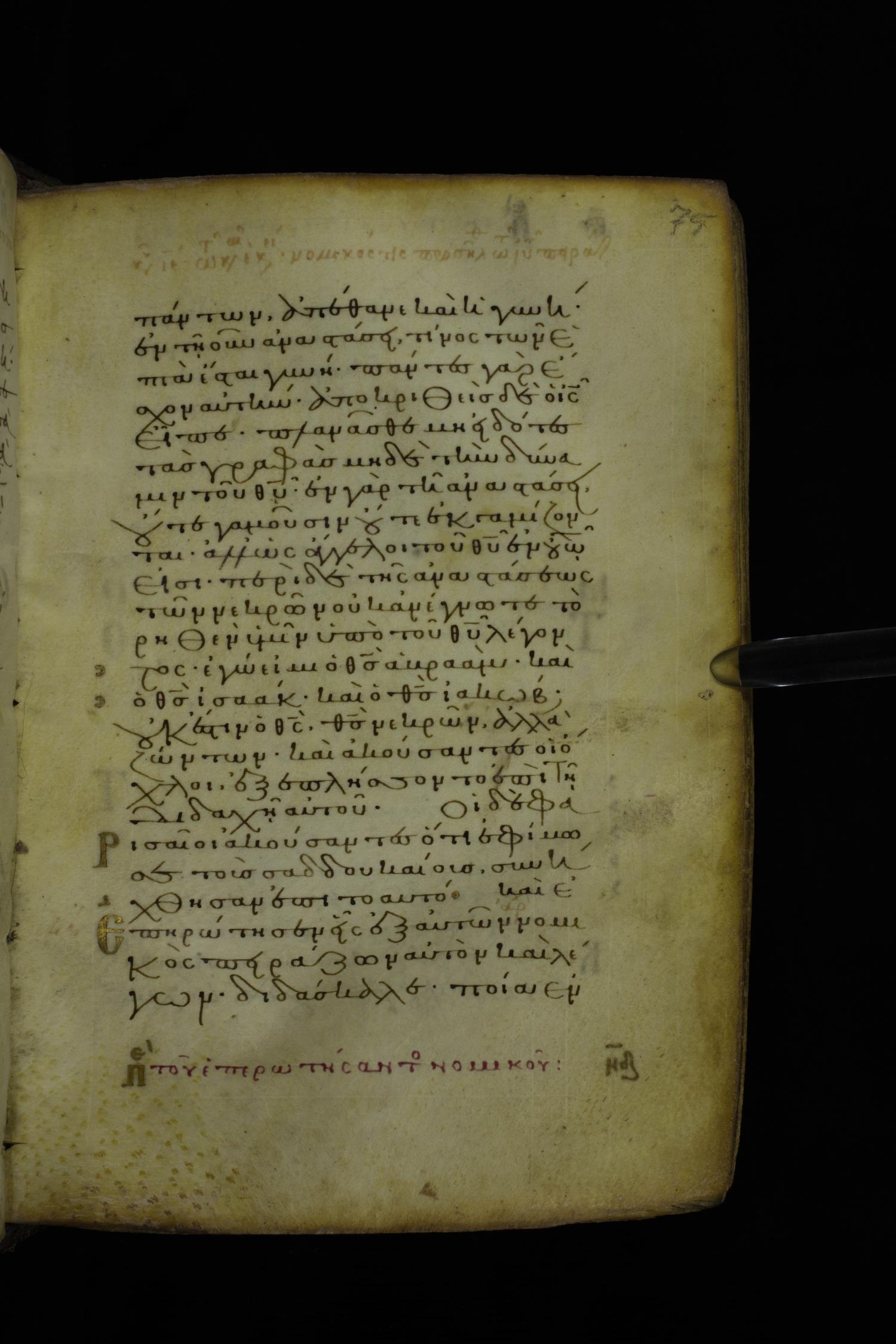 Twelfth century minuscule of the Gospel on parchment; 305 leaves, 1 column, 24 lines per column. Images were taken at the National Library of Greece in Athens.