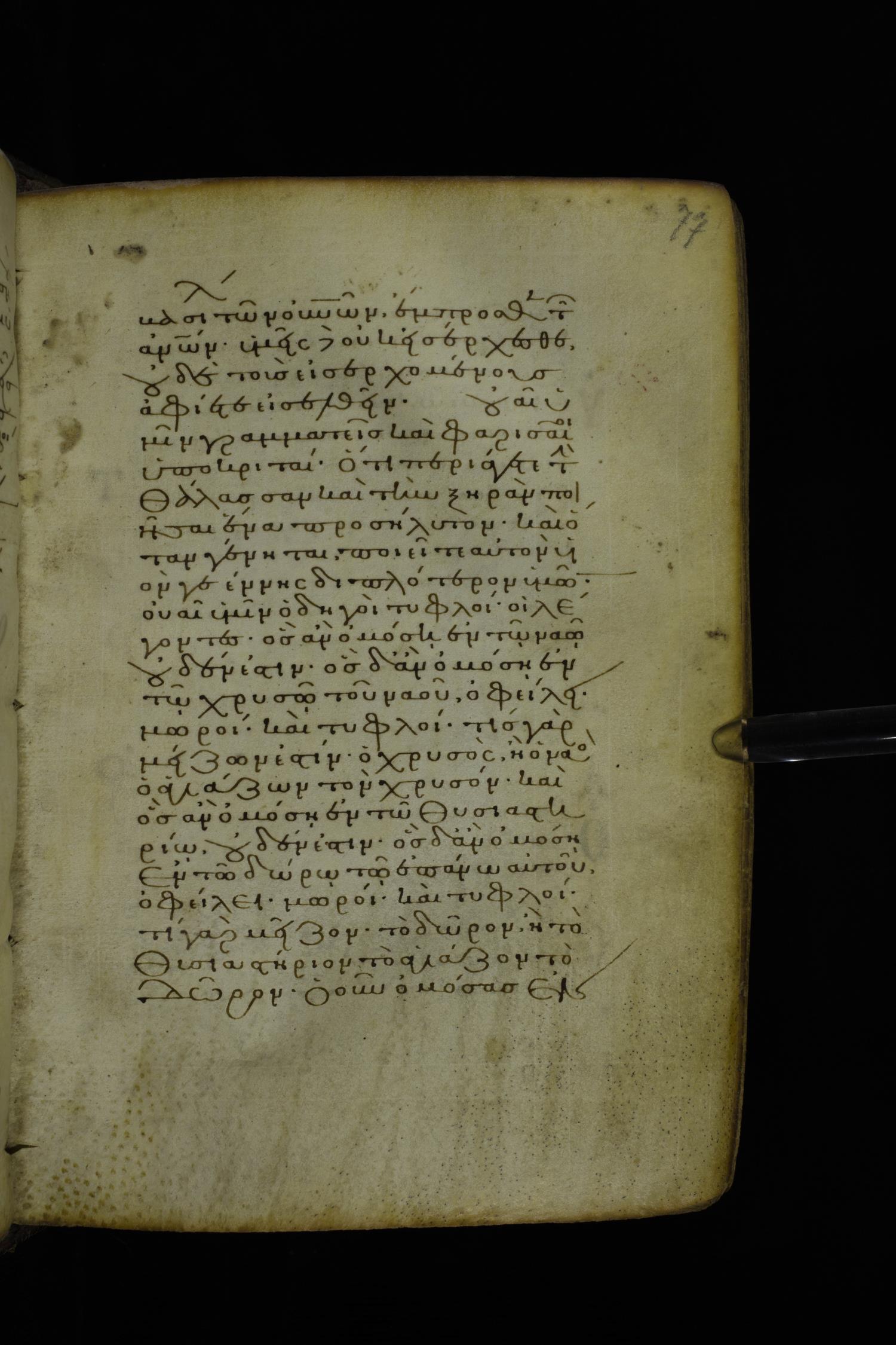 Twelfth century minuscule of the Gospel on parchment; 305 leaves, 1 column, 24 lines per column. Images were taken at the National Library of Greece in Athens.
