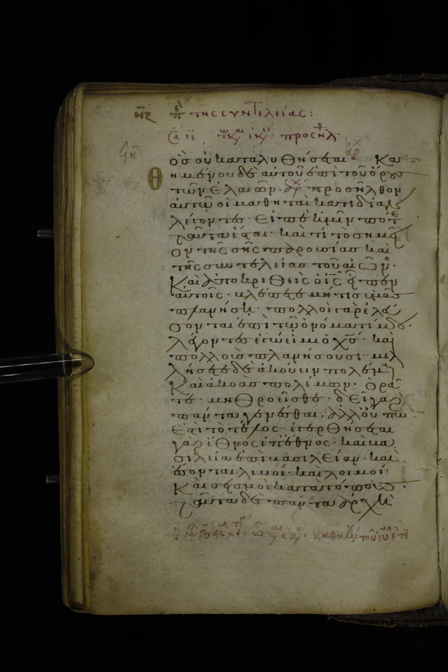 Twelfth century minuscule of the Gospel on parchment; 305 leaves, 1 column, 24 lines per column. Images were taken at the National Library of Greece in Athens.