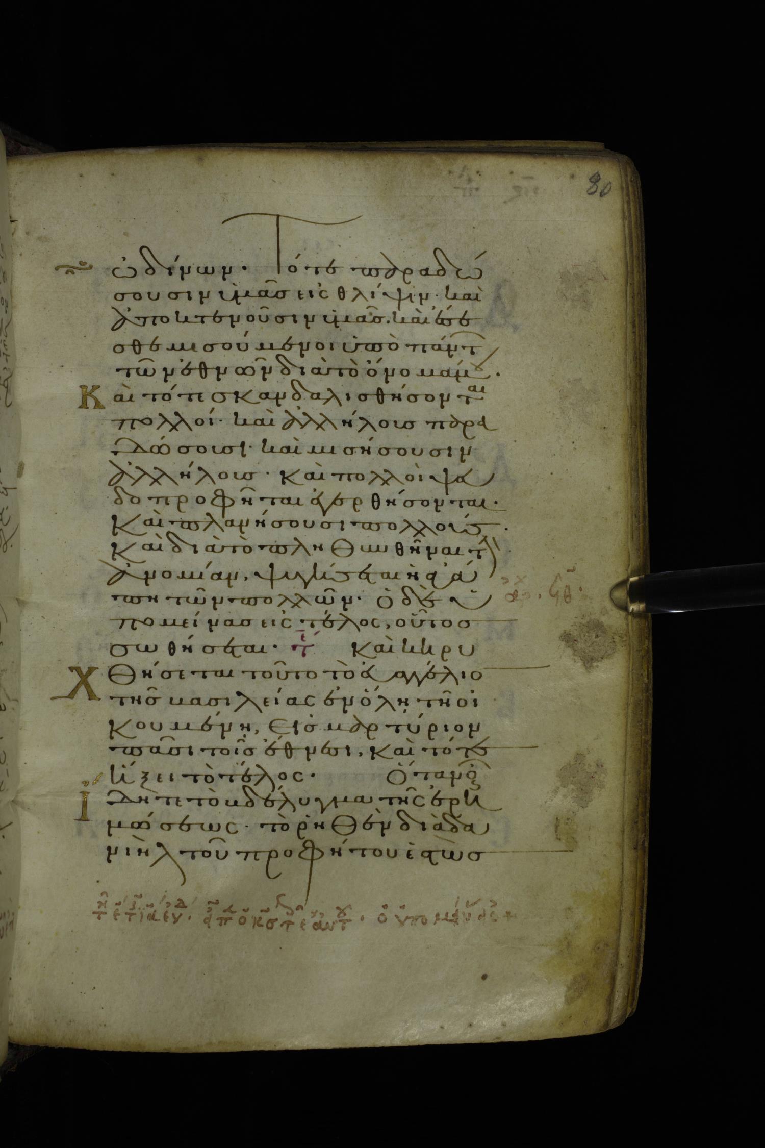 Twelfth century minuscule of the Gospel on parchment; 305 leaves, 1 column, 24 lines per column. Images were taken at the National Library of Greece in Athens.