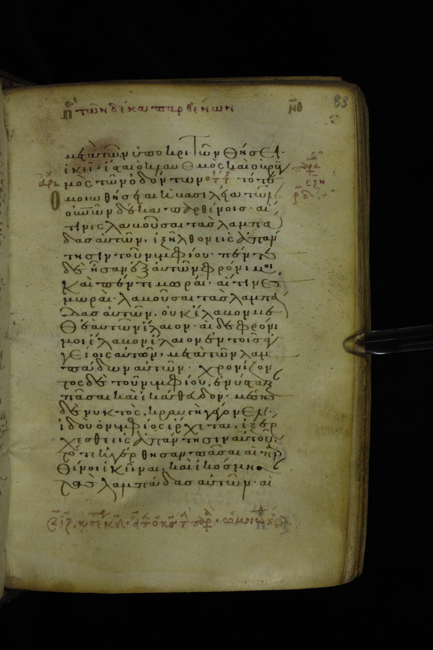 Twelfth century minuscule of the Gospel on parchment; 305 leaves, 1 column, 24 lines per column. Images were taken at the National Library of Greece in Athens.