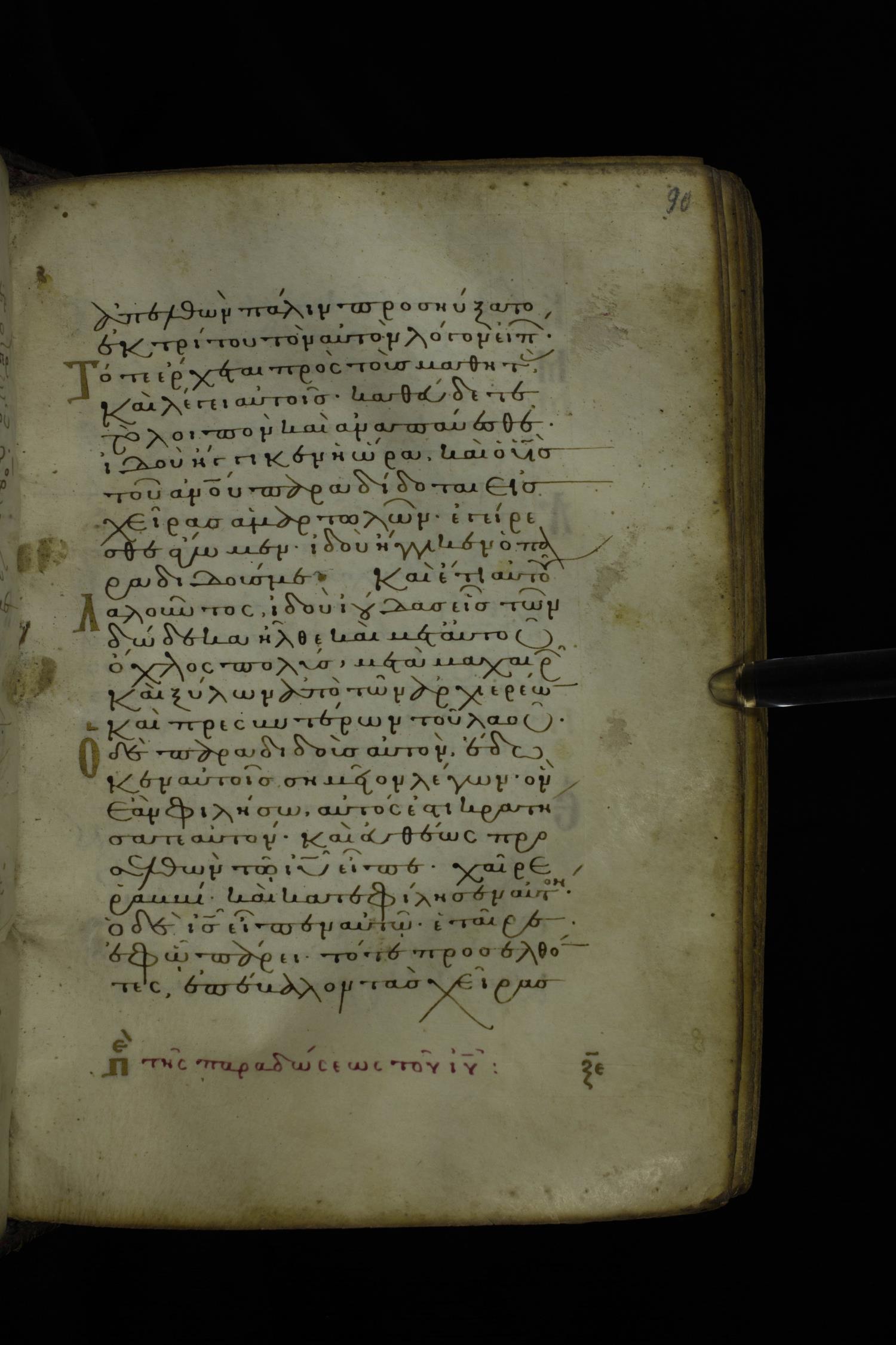 Twelfth century minuscule of the Gospel on parchment; 305 leaves, 1 column, 24 lines per column. Images were taken at the National Library of Greece in Athens.