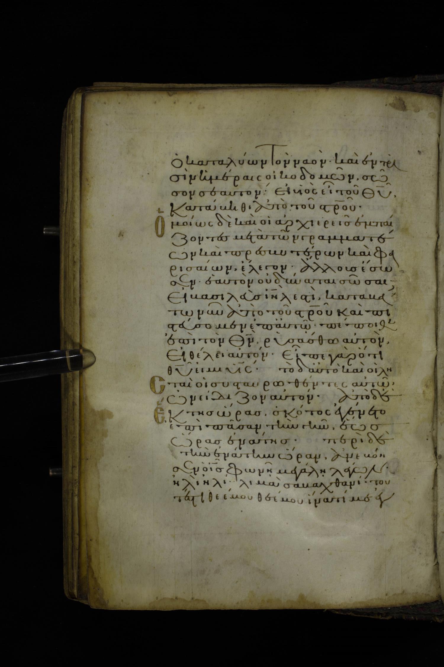 Twelfth century minuscule of the Gospel on parchment; 305 leaves, 1 column, 24 lines per column. Images were taken at the National Library of Greece in Athens.