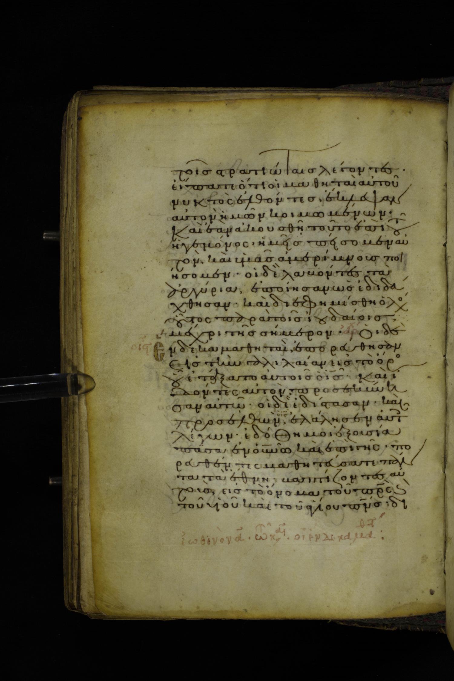 Twelfth century minuscule of the Gospel on parchment; 305 leaves, 1 column, 24 lines per column. Images were taken at the National Library of Greece in Athens.