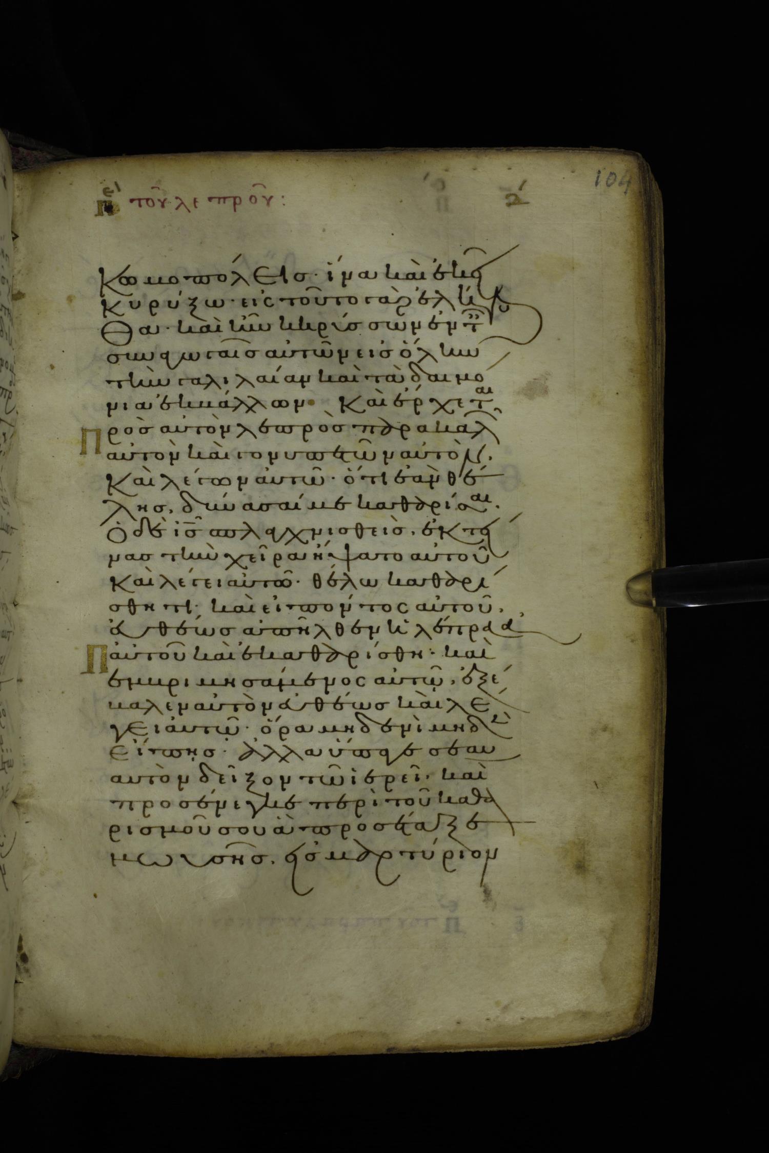 Twelfth century minuscule of the Gospel on parchment; 305 leaves, 1 column, 24 lines per column. Images were taken at the National Library of Greece in Athens.