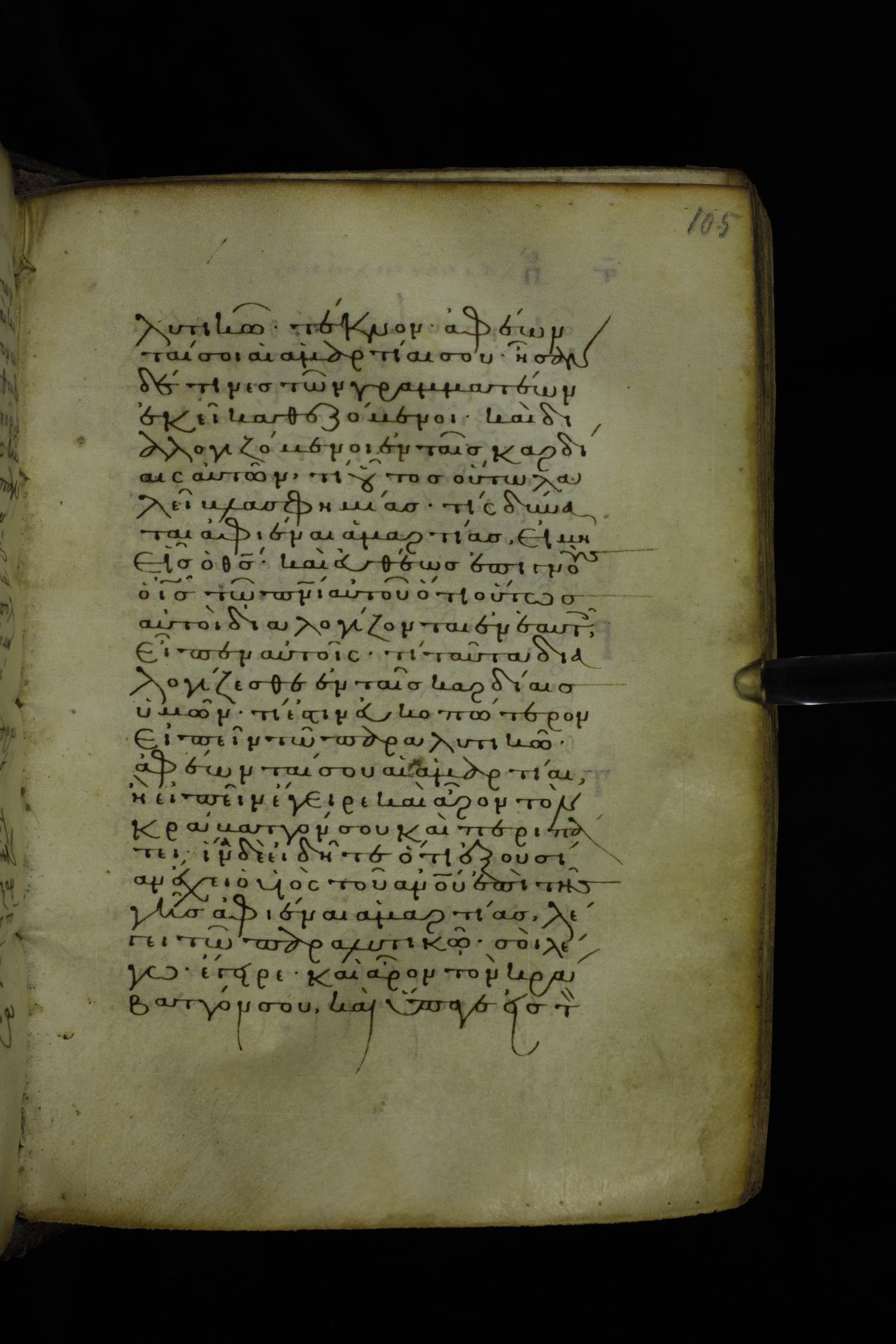 Twelfth century minuscule of the Gospel on parchment; 305 leaves, 1 column, 24 lines per column. Images were taken at the National Library of Greece in Athens.