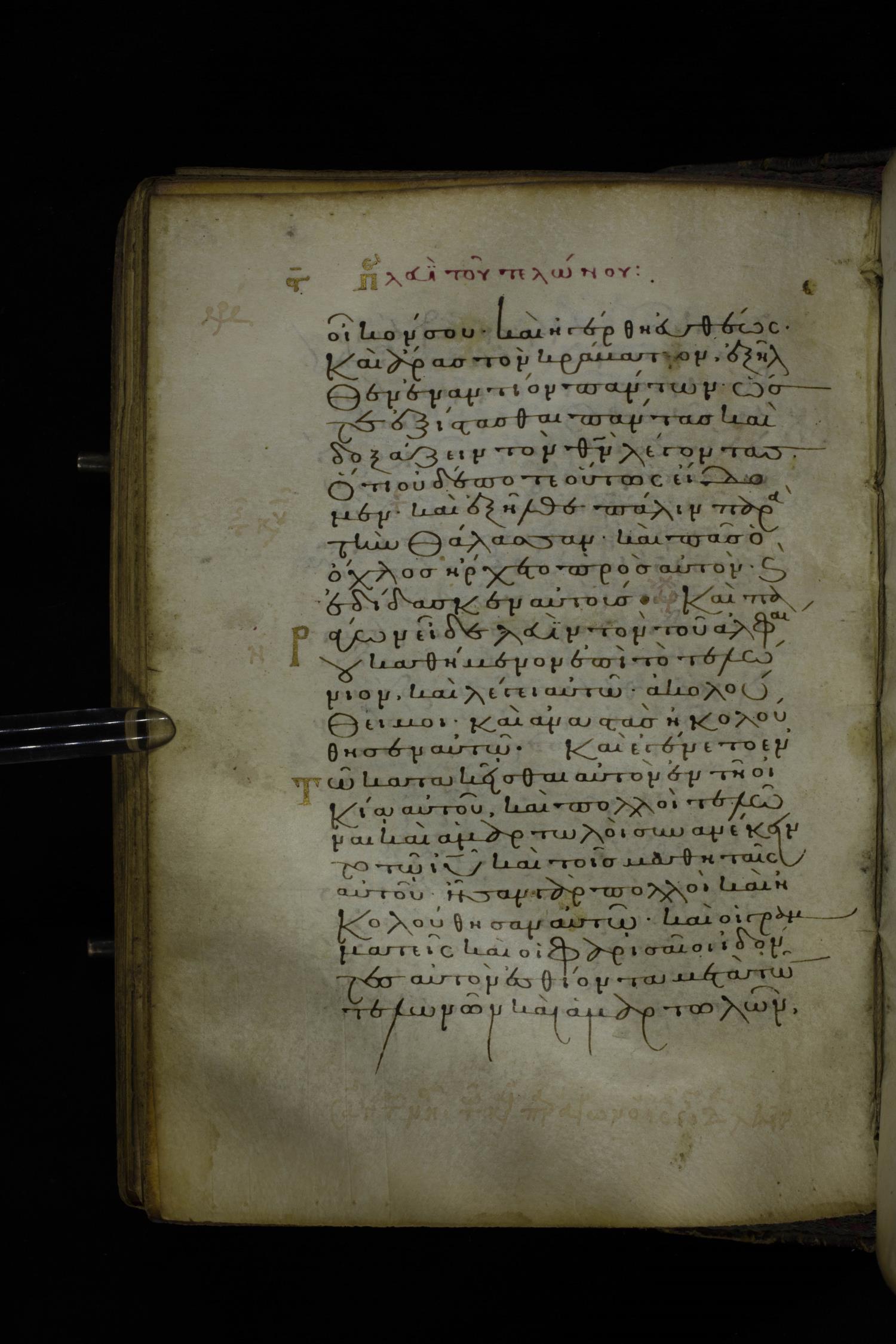Twelfth century minuscule of the Gospel on parchment; 305 leaves, 1 column, 24 lines per column. Images were taken at the National Library of Greece in Athens.