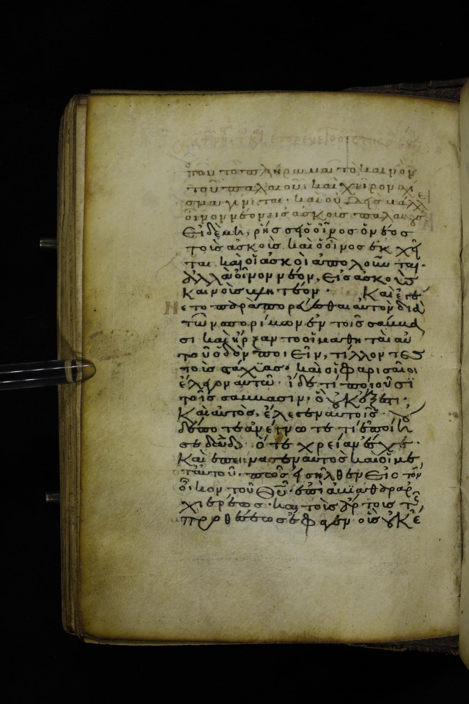 Twelfth century minuscule of the Gospel on parchment; 305 leaves, 1 column, 24 lines per column. Images were taken at the National Library of Greece in Athens.
