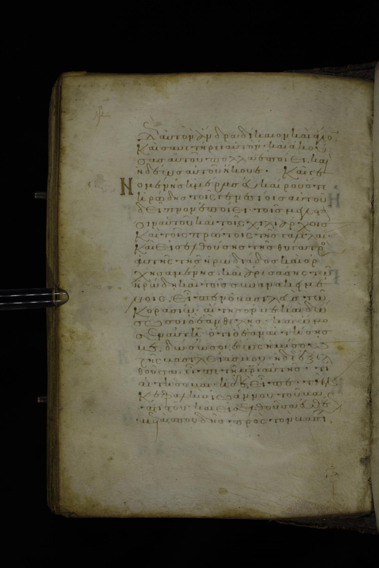 Twelfth century minuscule of the Gospel on parchment; 305 leaves, 1 column, 24 lines per column. Images were taken at the National Library of Greece in Athens.