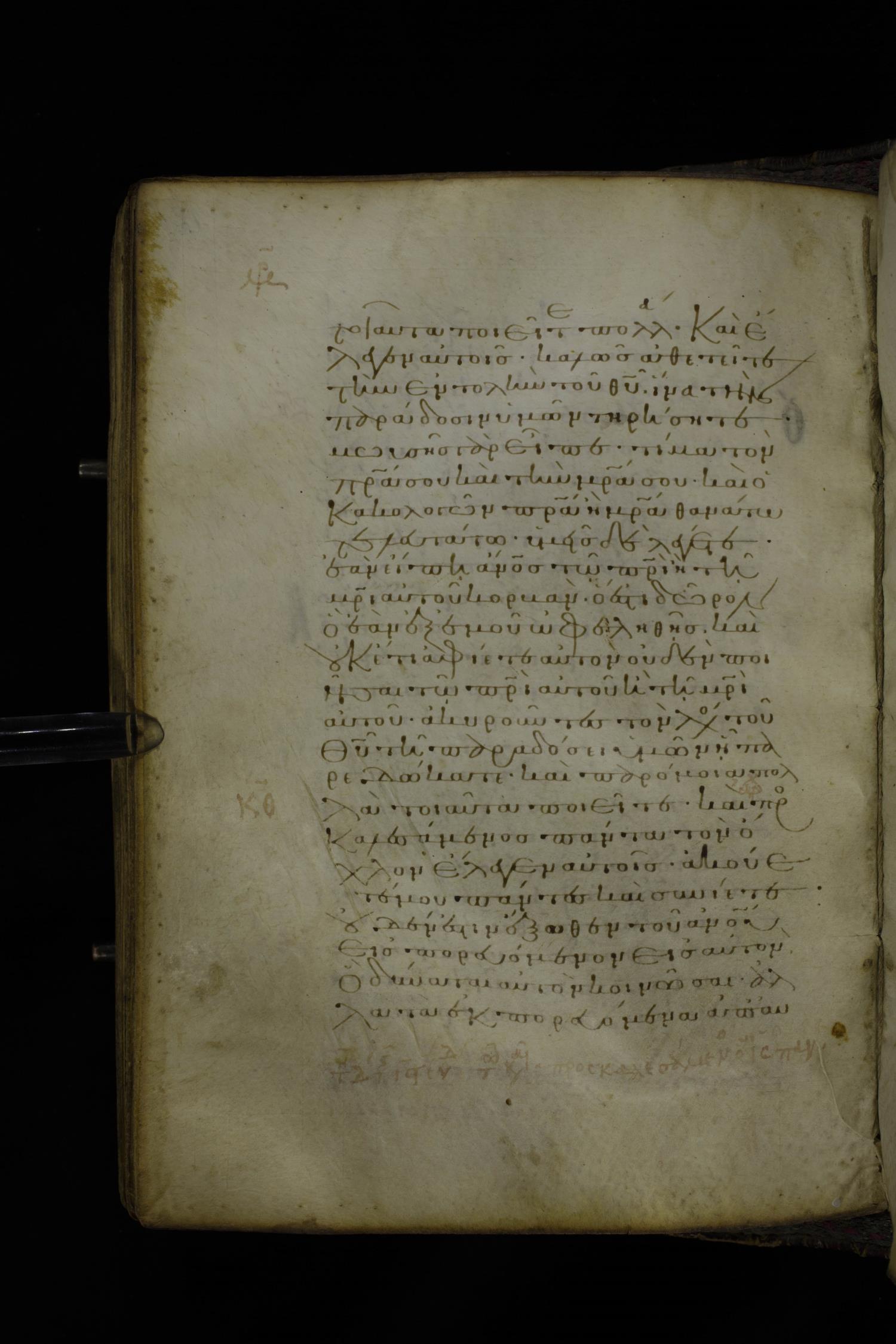 Twelfth century minuscule of the Gospel on parchment; 305 leaves, 1 column, 24 lines per column. Images were taken at the National Library of Greece in Athens.