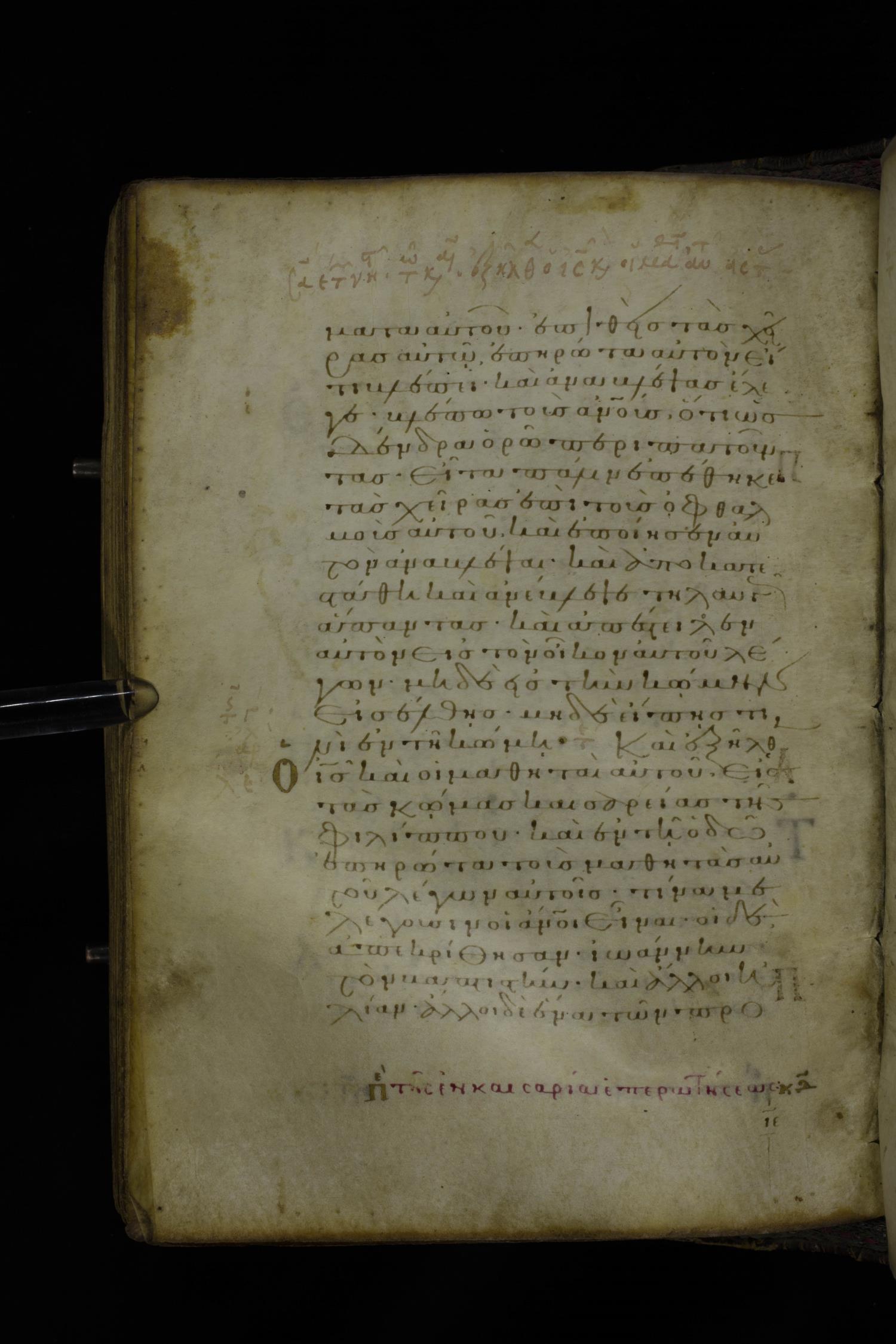 Twelfth century minuscule of the Gospel on parchment; 305 leaves, 1 column, 24 lines per column. Images were taken at the National Library of Greece in Athens.