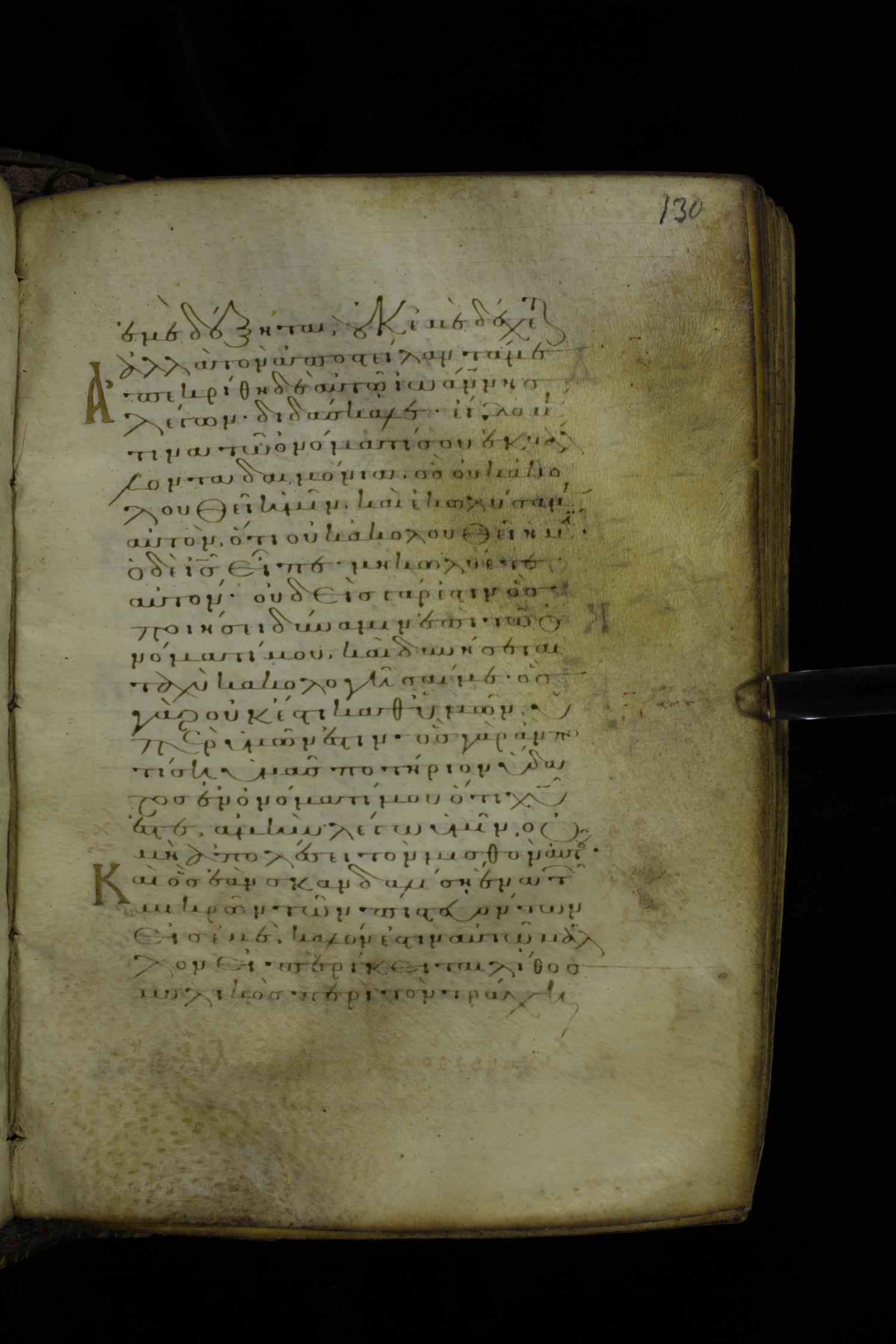 Twelfth century minuscule of the Gospel on parchment; 305 leaves, 1 column, 24 lines per column. Images were taken at the National Library of Greece in Athens.
