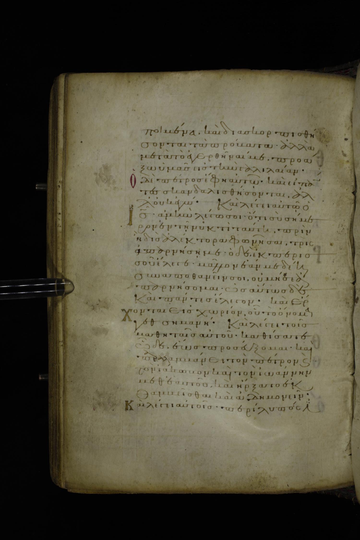 Twelfth century minuscule of the Gospel on parchment; 305 leaves, 1 column, 24 lines per column. Images were taken at the National Library of Greece in Athens.