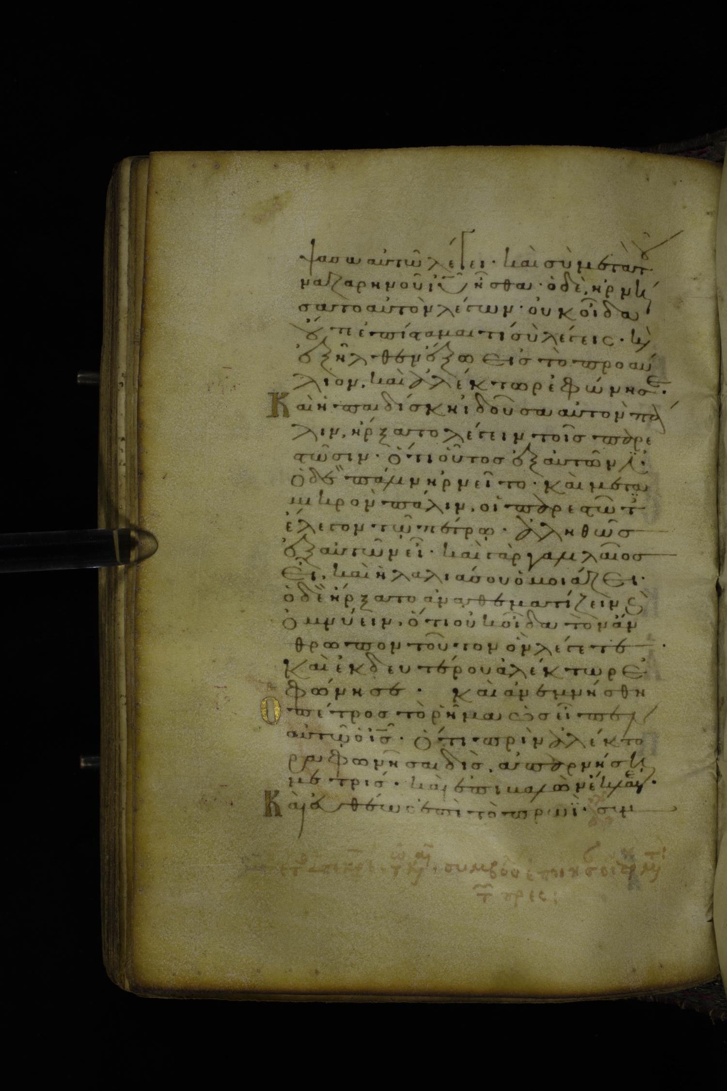 Twelfth century minuscule of the Gospel on parchment; 305 leaves, 1 column, 24 lines per column. Images were taken at the National Library of Greece in Athens.