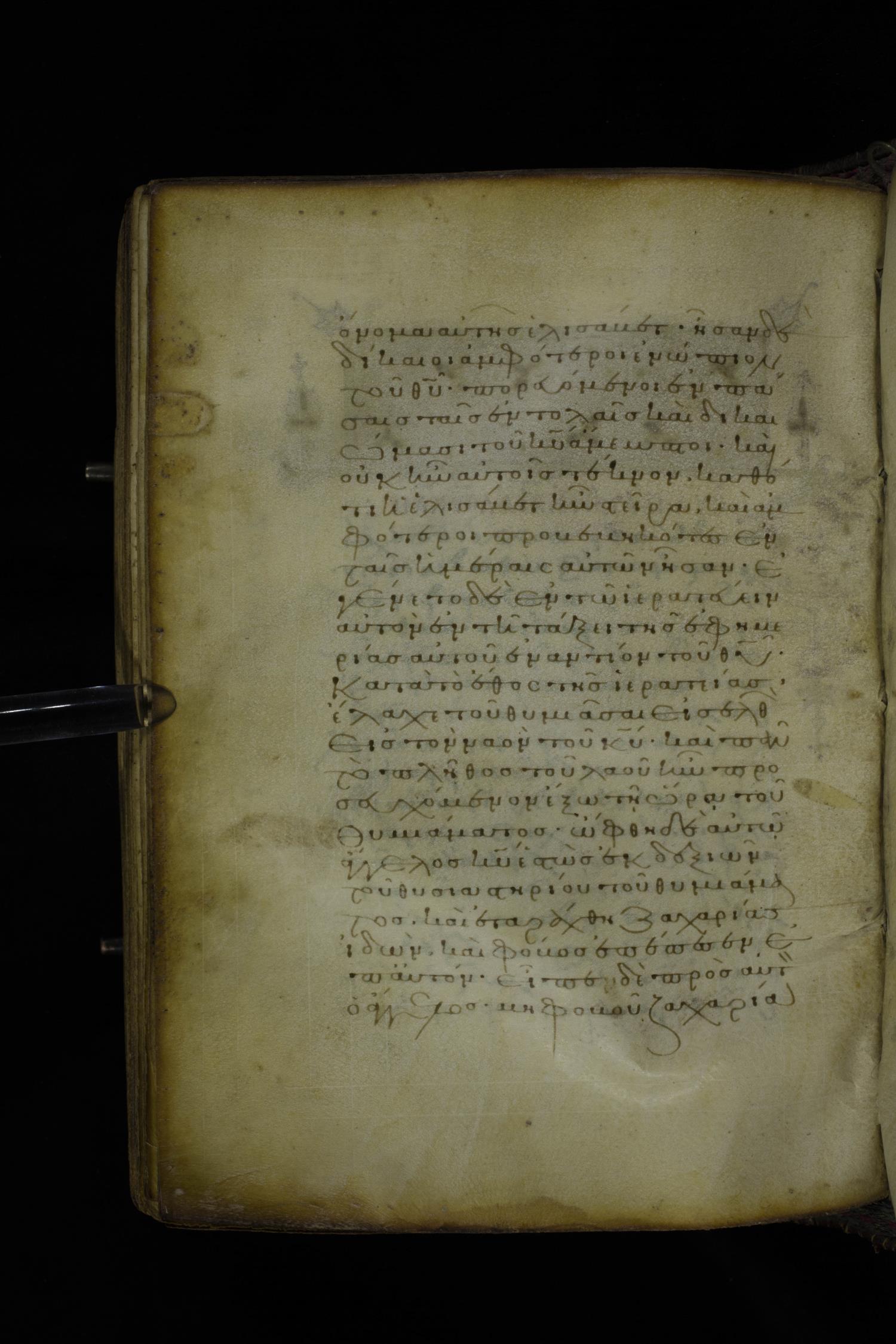 Twelfth century minuscule of the Gospel on parchment; 305 leaves, 1 column, 24 lines per column. Images were taken at the National Library of Greece in Athens.