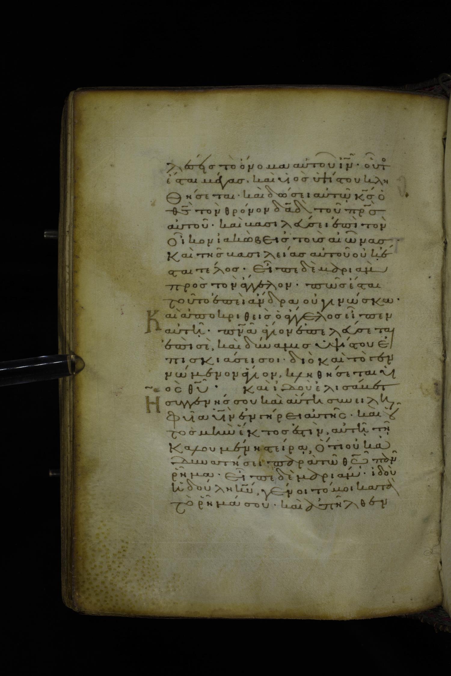 Twelfth century minuscule of the Gospel on parchment; 305 leaves, 1 column, 24 lines per column. Images were taken at the National Library of Greece in Athens.