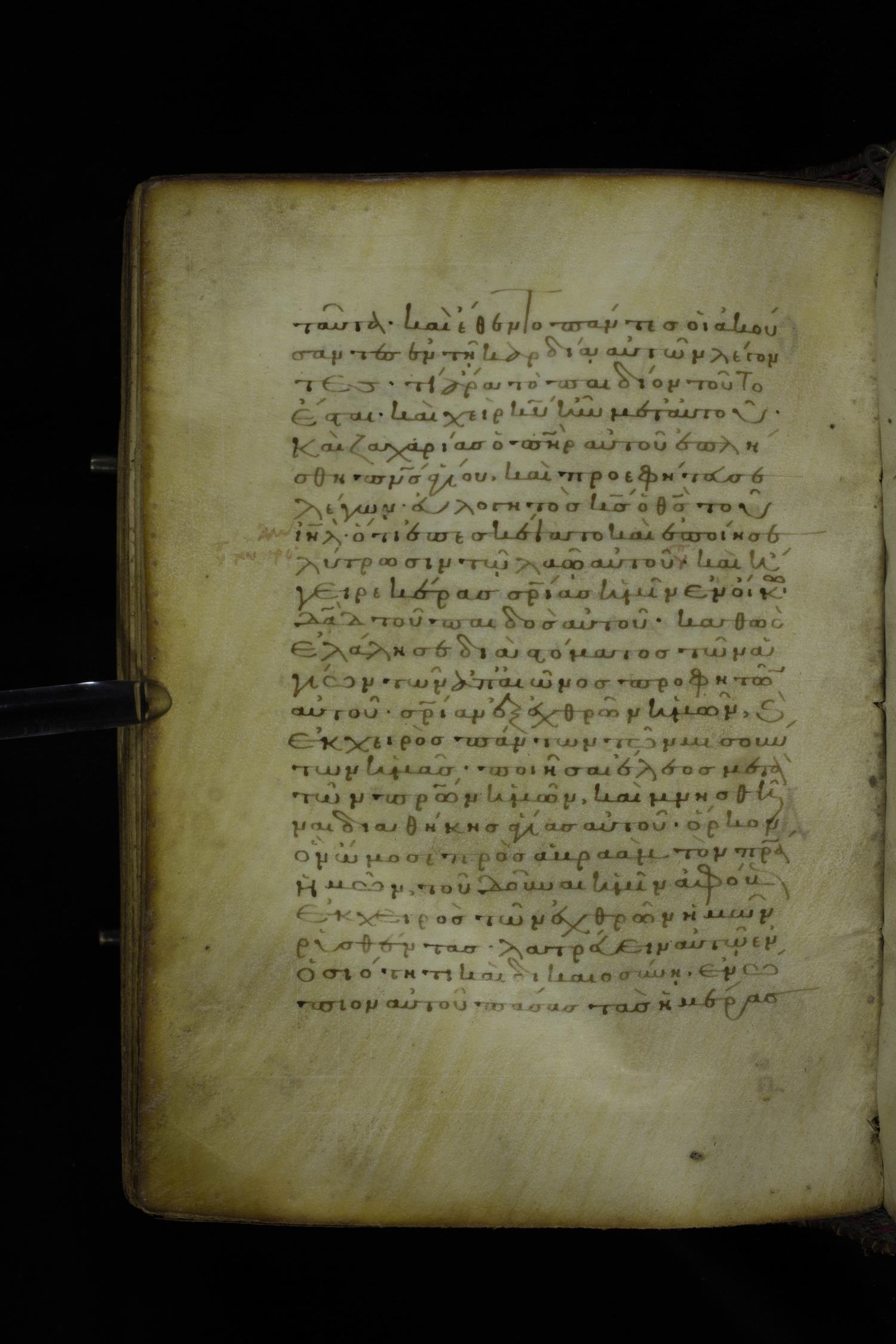 Twelfth century minuscule of the Gospel on parchment; 305 leaves, 1 column, 24 lines per column. Images were taken at the National Library of Greece in Athens.