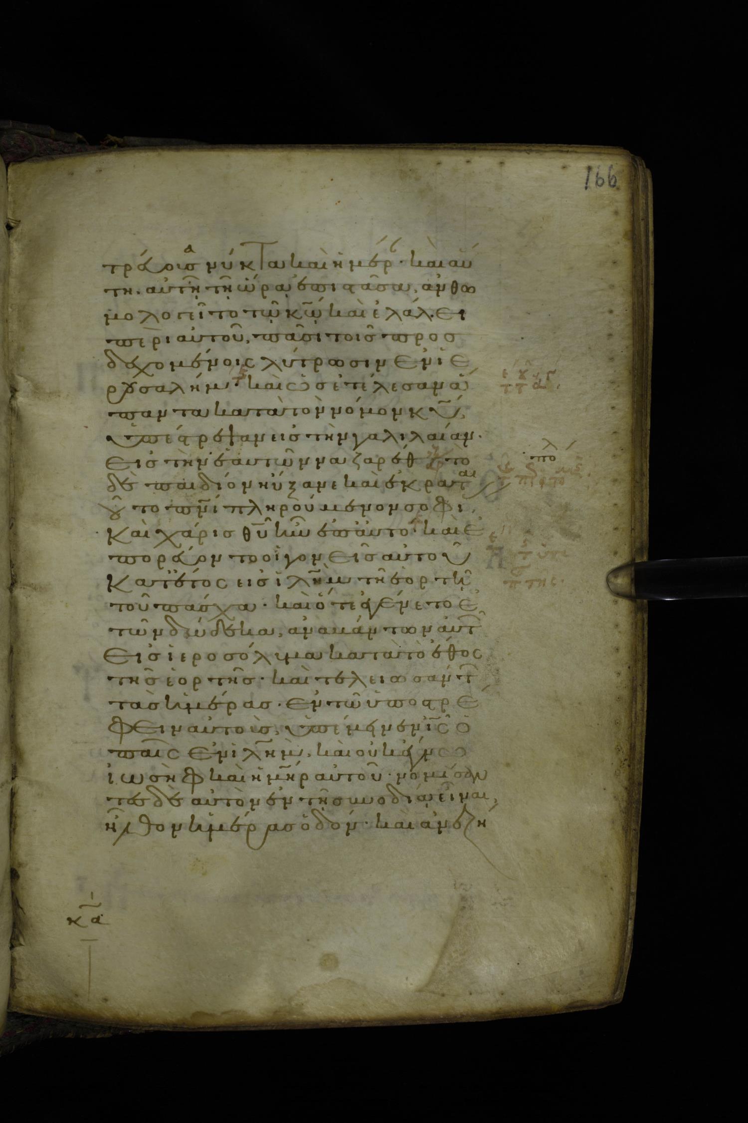 Twelfth century minuscule of the Gospel on parchment; 305 leaves, 1 column, 24 lines per column. Images were taken at the National Library of Greece in Athens.