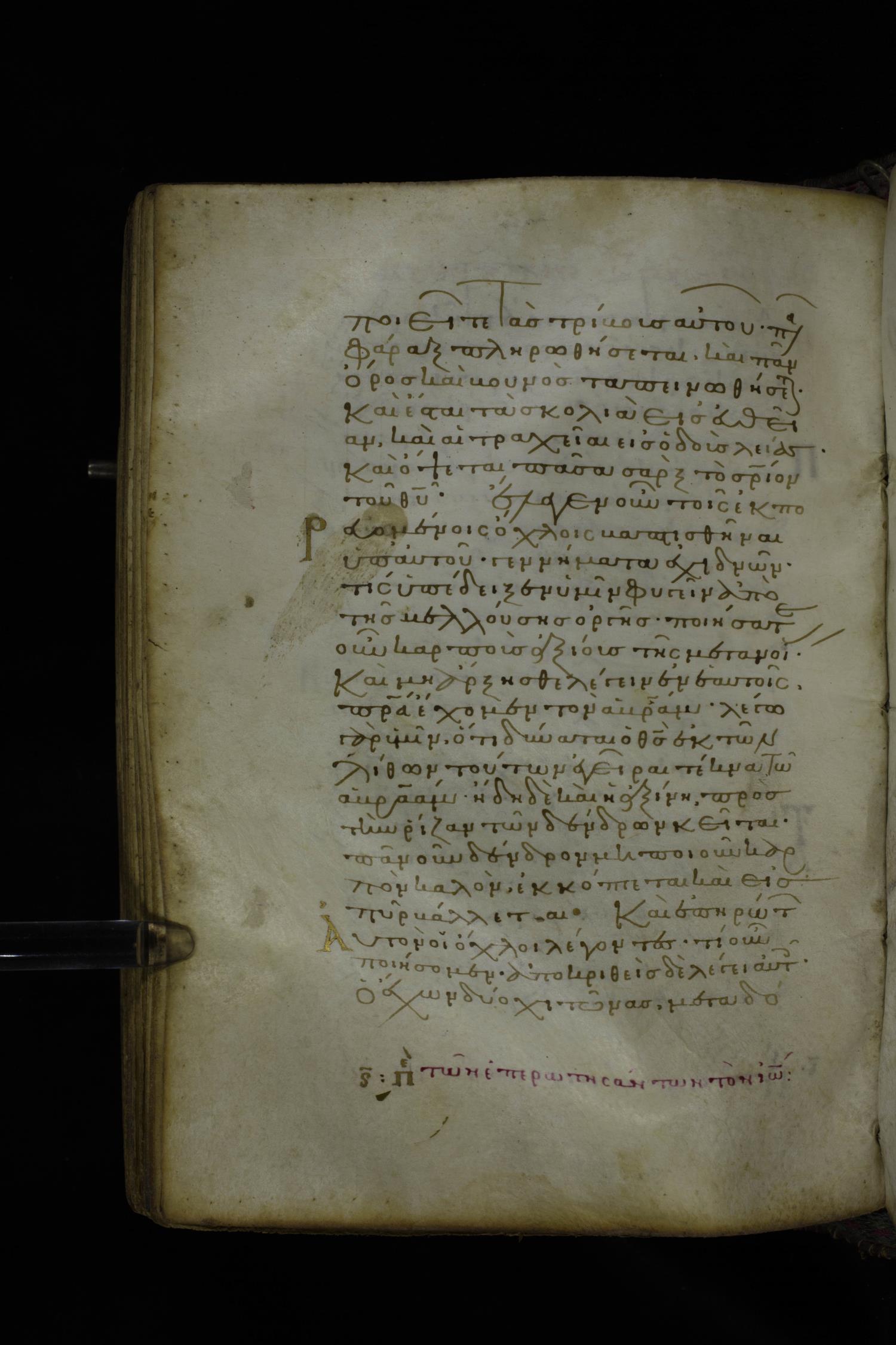 Twelfth century minuscule of the Gospel on parchment; 305 leaves, 1 column, 24 lines per column. Images were taken at the National Library of Greece in Athens.