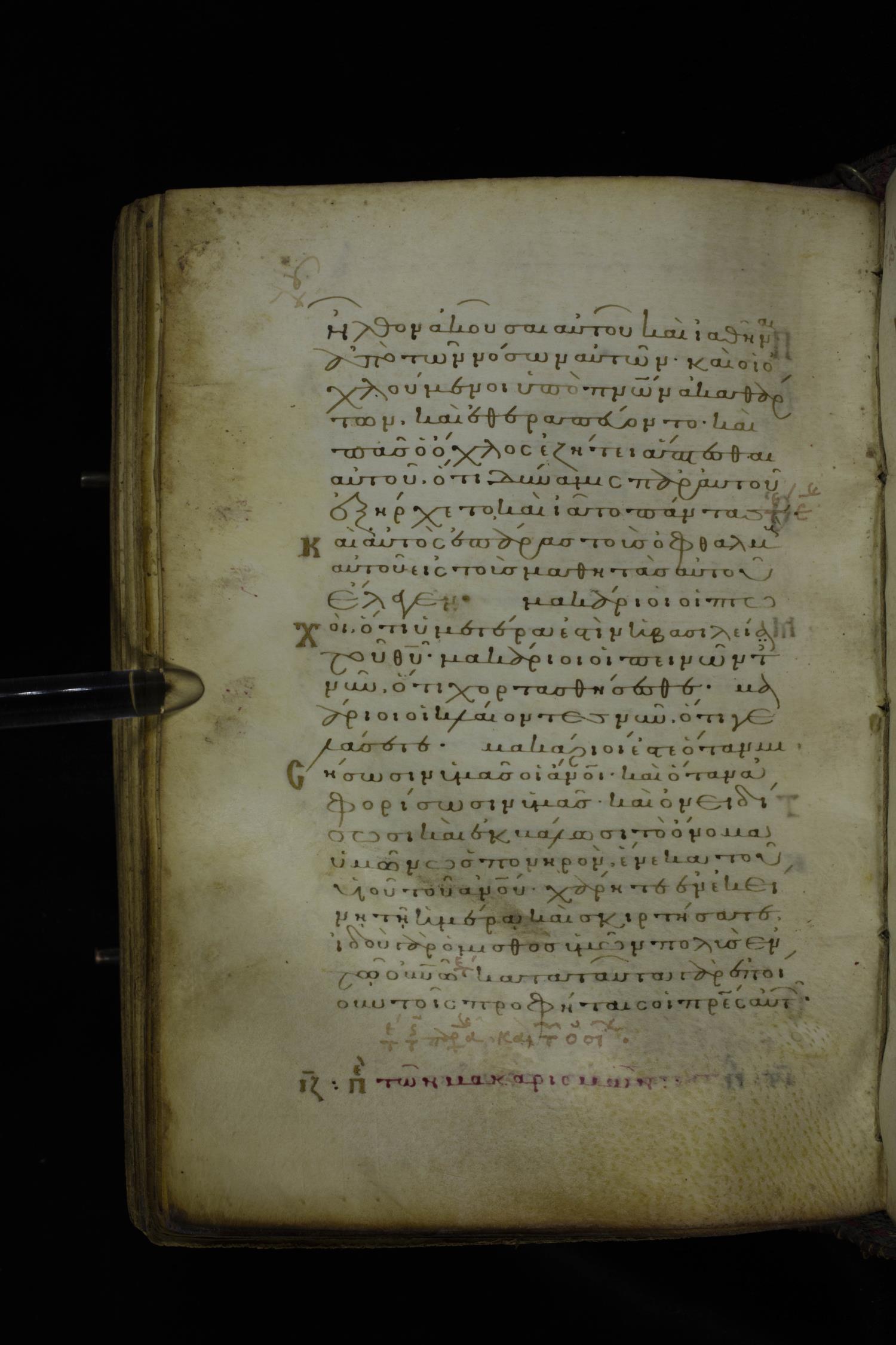 Twelfth century minuscule of the Gospel on parchment; 305 leaves, 1 column, 24 lines per column. Images were taken at the National Library of Greece in Athens.