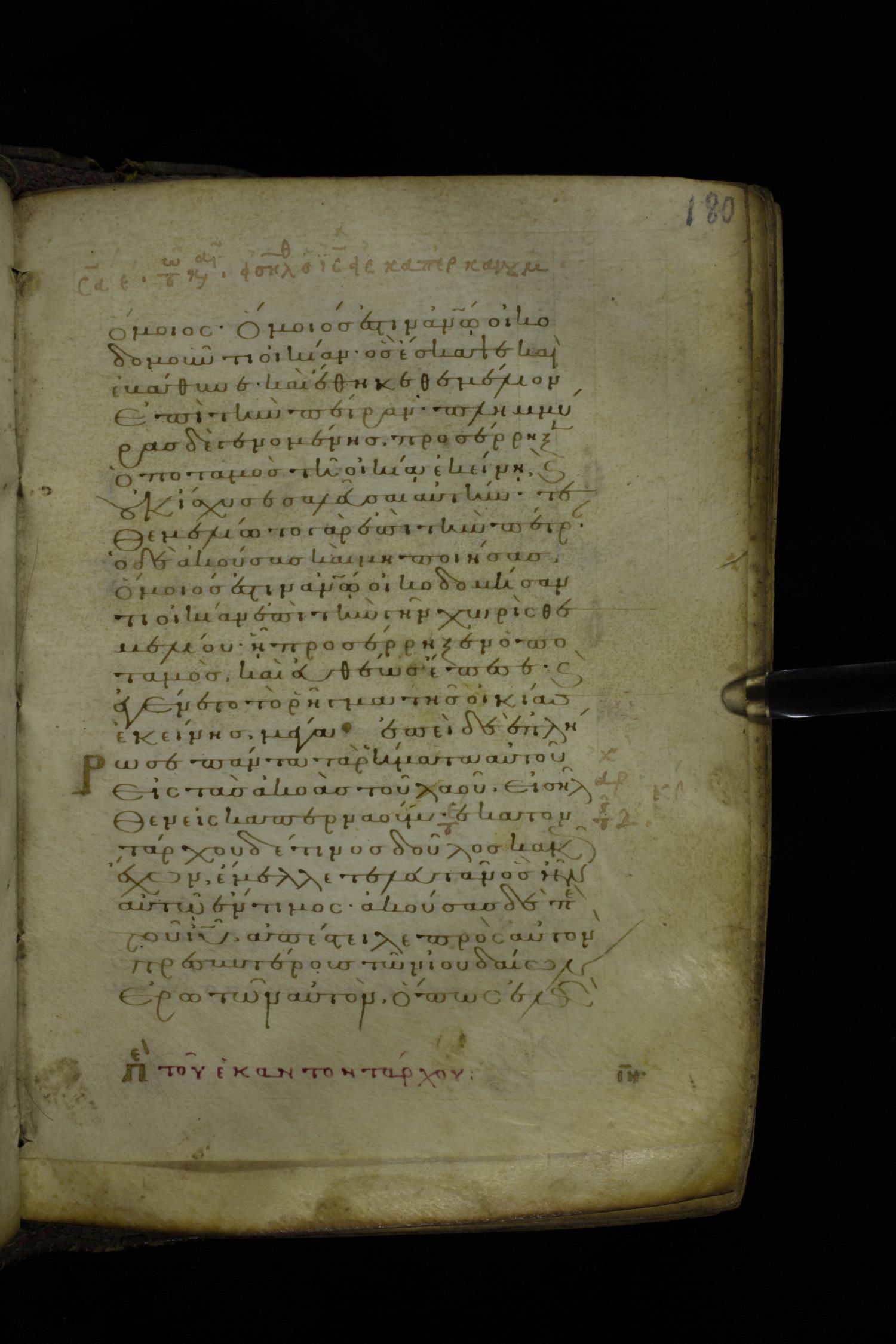 Twelfth century minuscule of the Gospel on parchment; 305 leaves, 1 column, 24 lines per column. Images were taken at the National Library of Greece in Athens.
