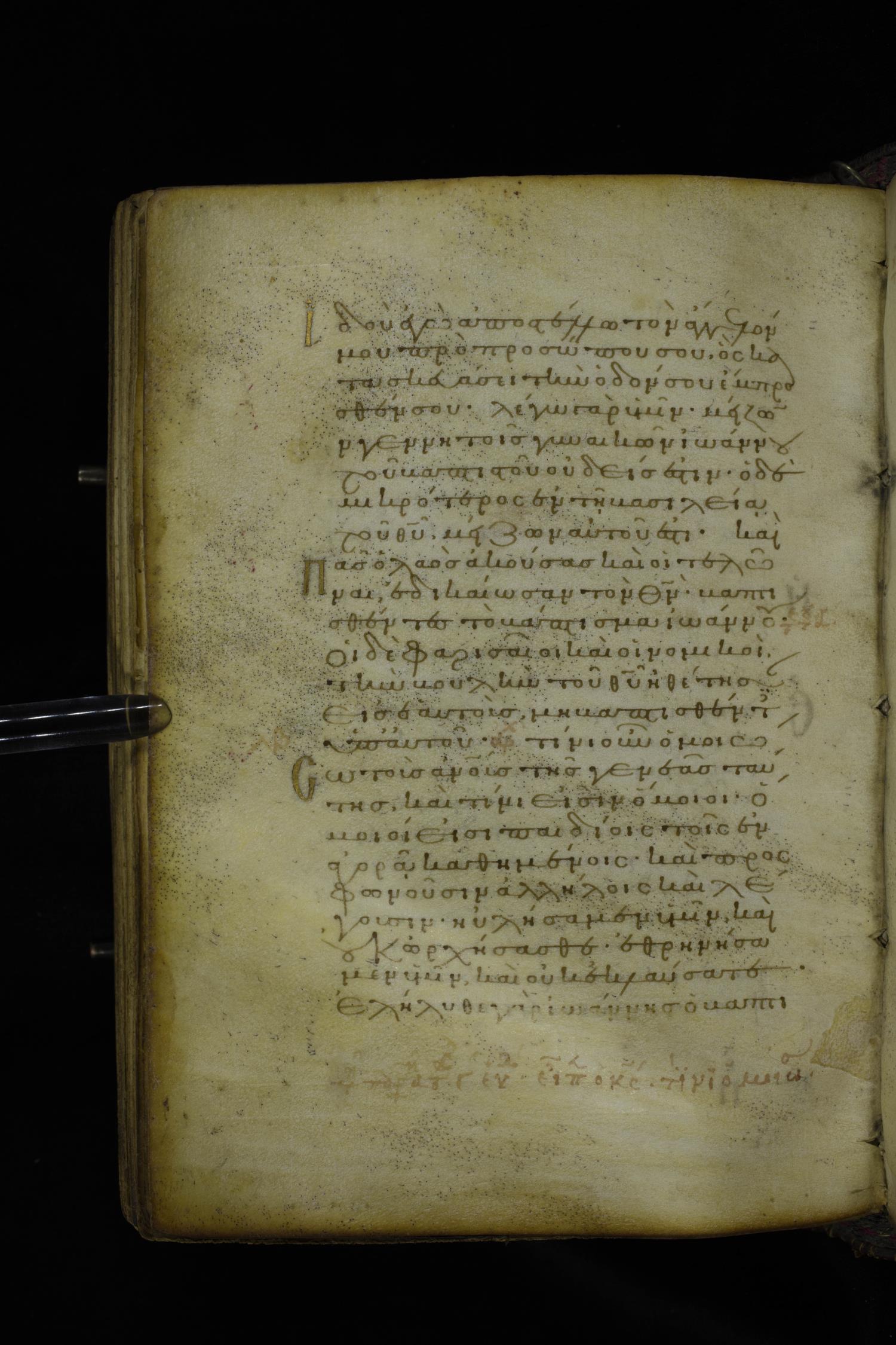 Twelfth century minuscule of the Gospel on parchment; 305 leaves, 1 column, 24 lines per column. Images were taken at the National Library of Greece in Athens.