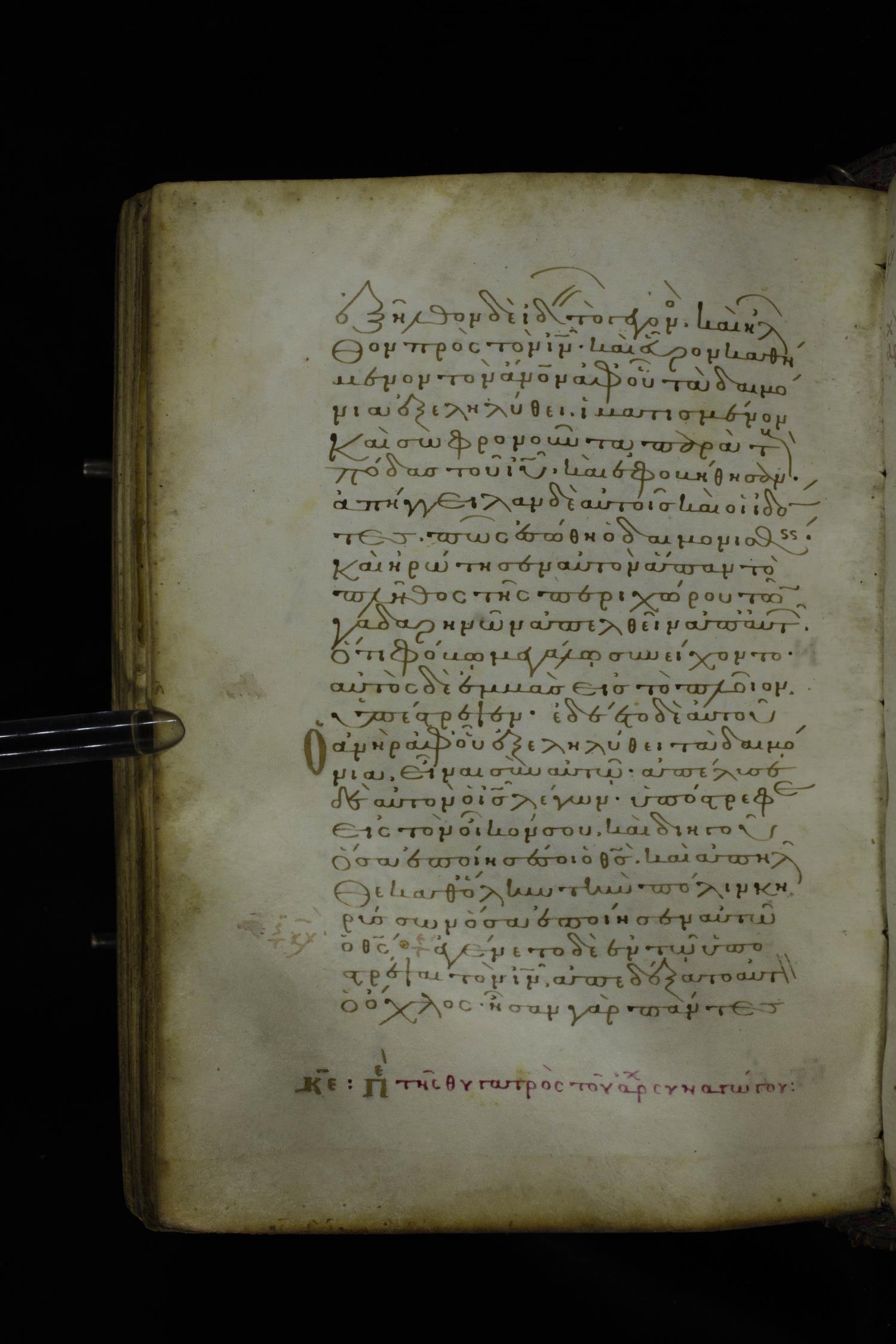 Twelfth century minuscule of the Gospel on parchment; 305 leaves, 1 column, 24 lines per column. Images were taken at the National Library of Greece in Athens.