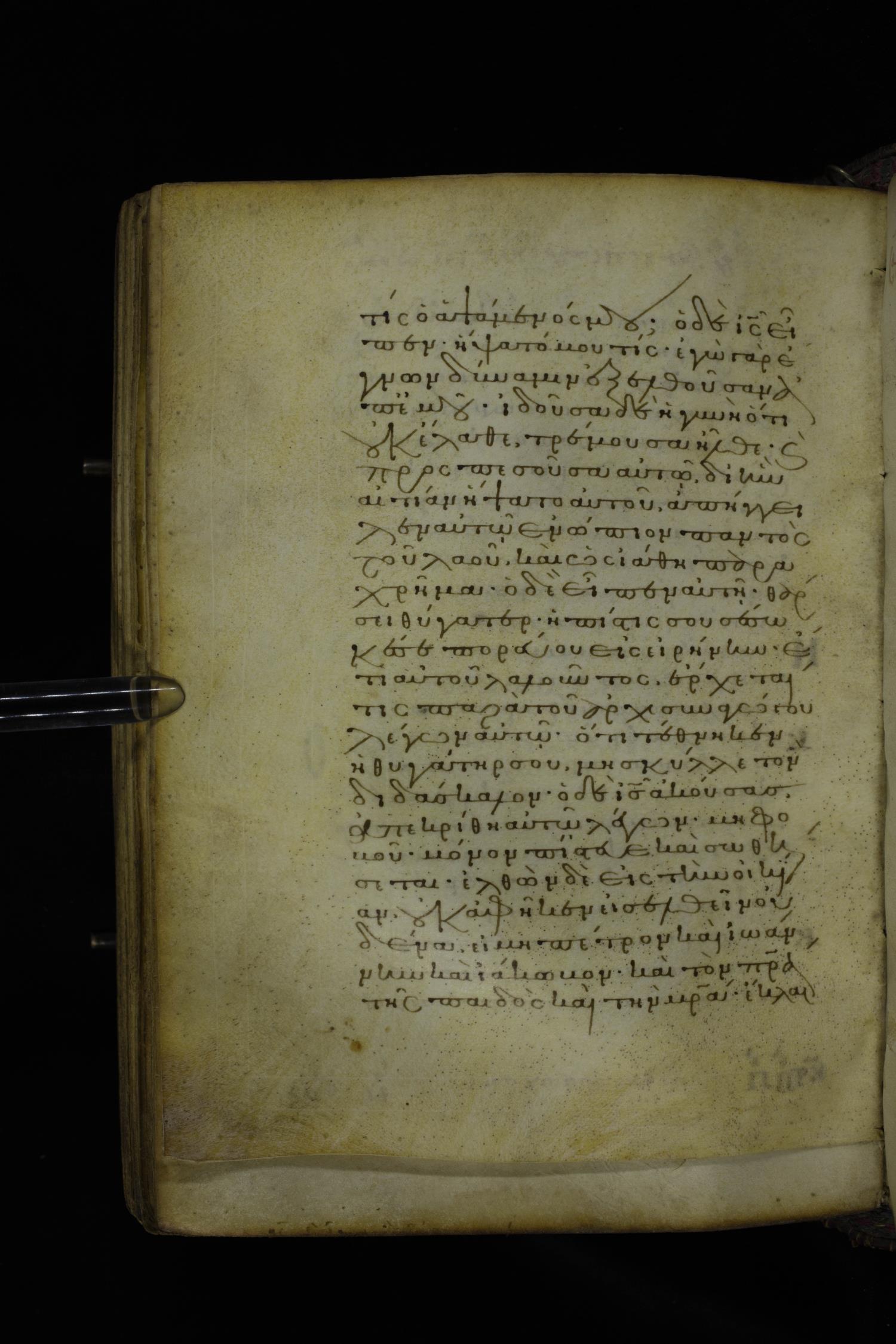 Twelfth century minuscule of the Gospel on parchment; 305 leaves, 1 column, 24 lines per column. Images were taken at the National Library of Greece in Athens.