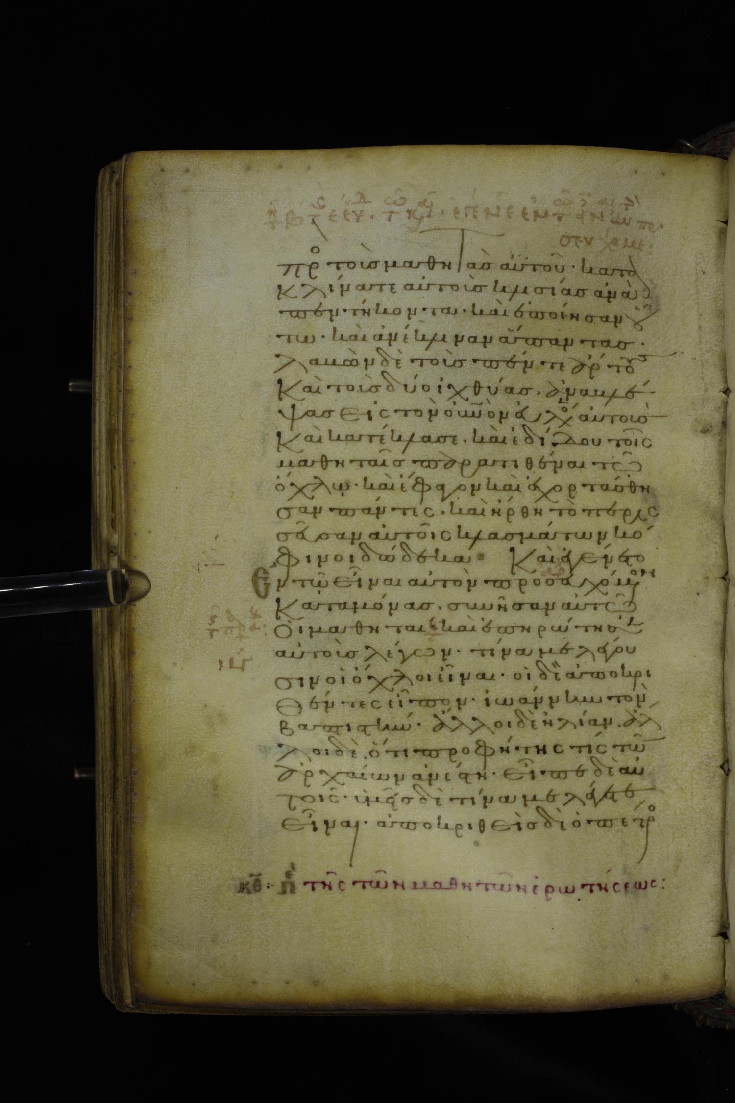 Twelfth century minuscule of the Gospel on parchment; 305 leaves, 1 column, 24 lines per column. Images were taken at the National Library of Greece in Athens.