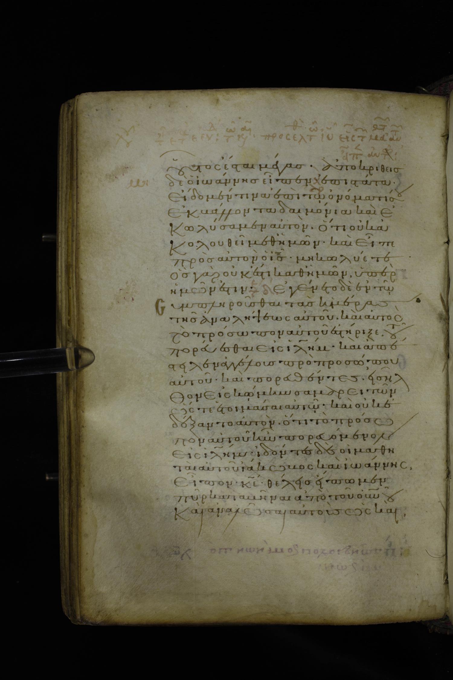 Twelfth century minuscule of the Gospel on parchment; 305 leaves, 1 column, 24 lines per column. Images were taken at the National Library of Greece in Athens.