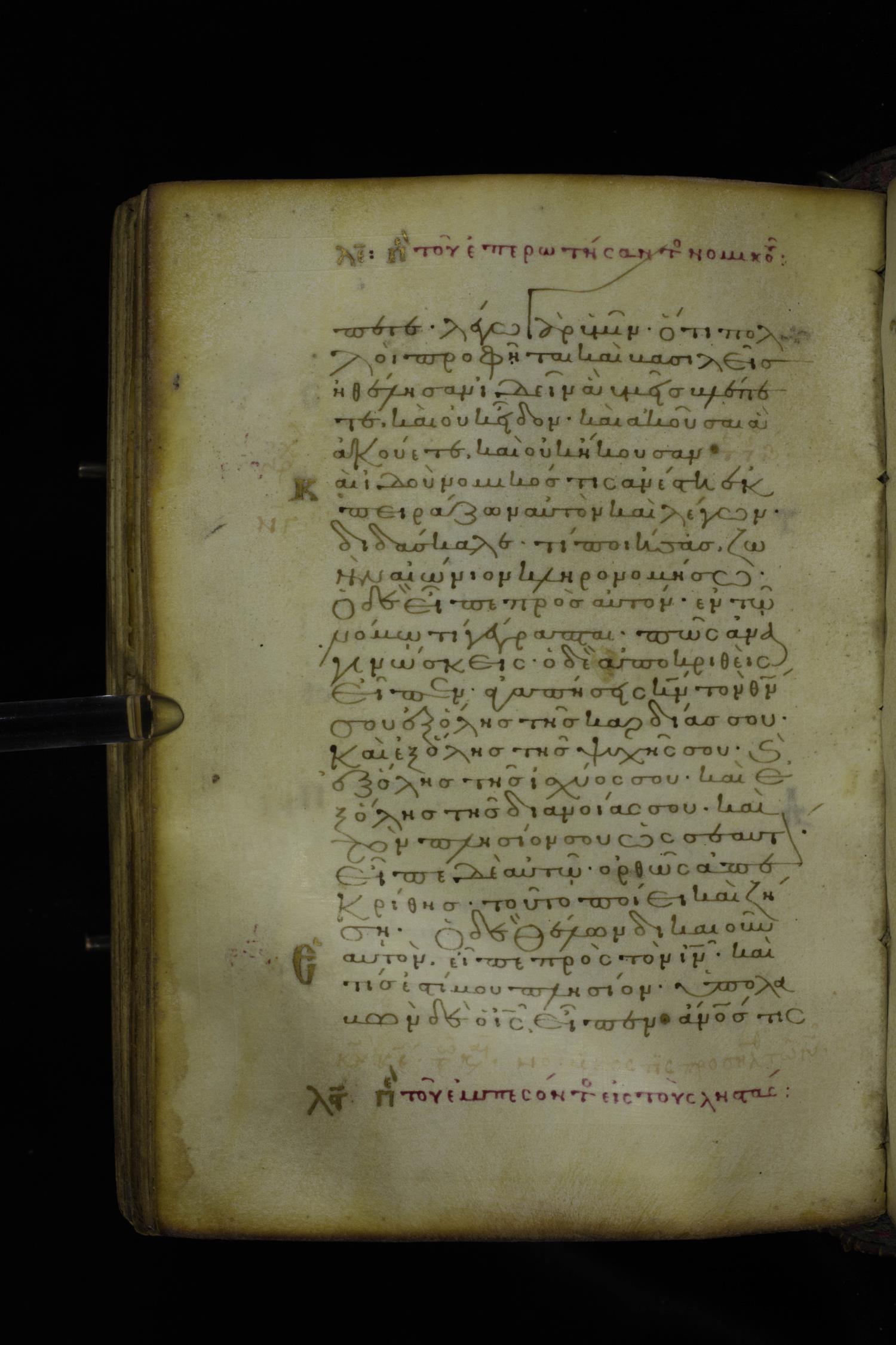 Twelfth century minuscule of the Gospel on parchment; 305 leaves, 1 column, 24 lines per column. Images were taken at the National Library of Greece in Athens.
