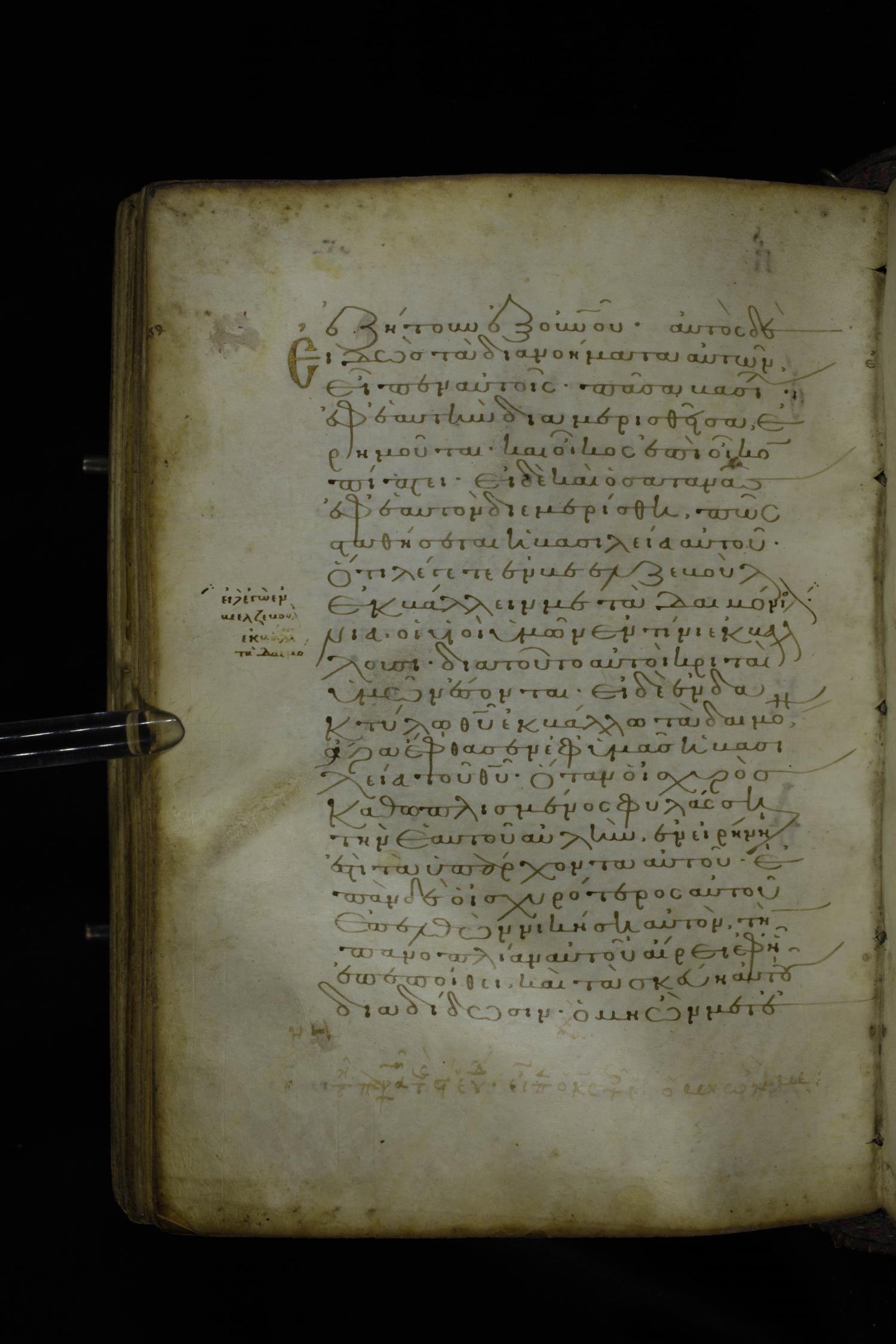 Twelfth century minuscule of the Gospel on parchment; 305 leaves, 1 column, 24 lines per column. Images were taken at the National Library of Greece in Athens.