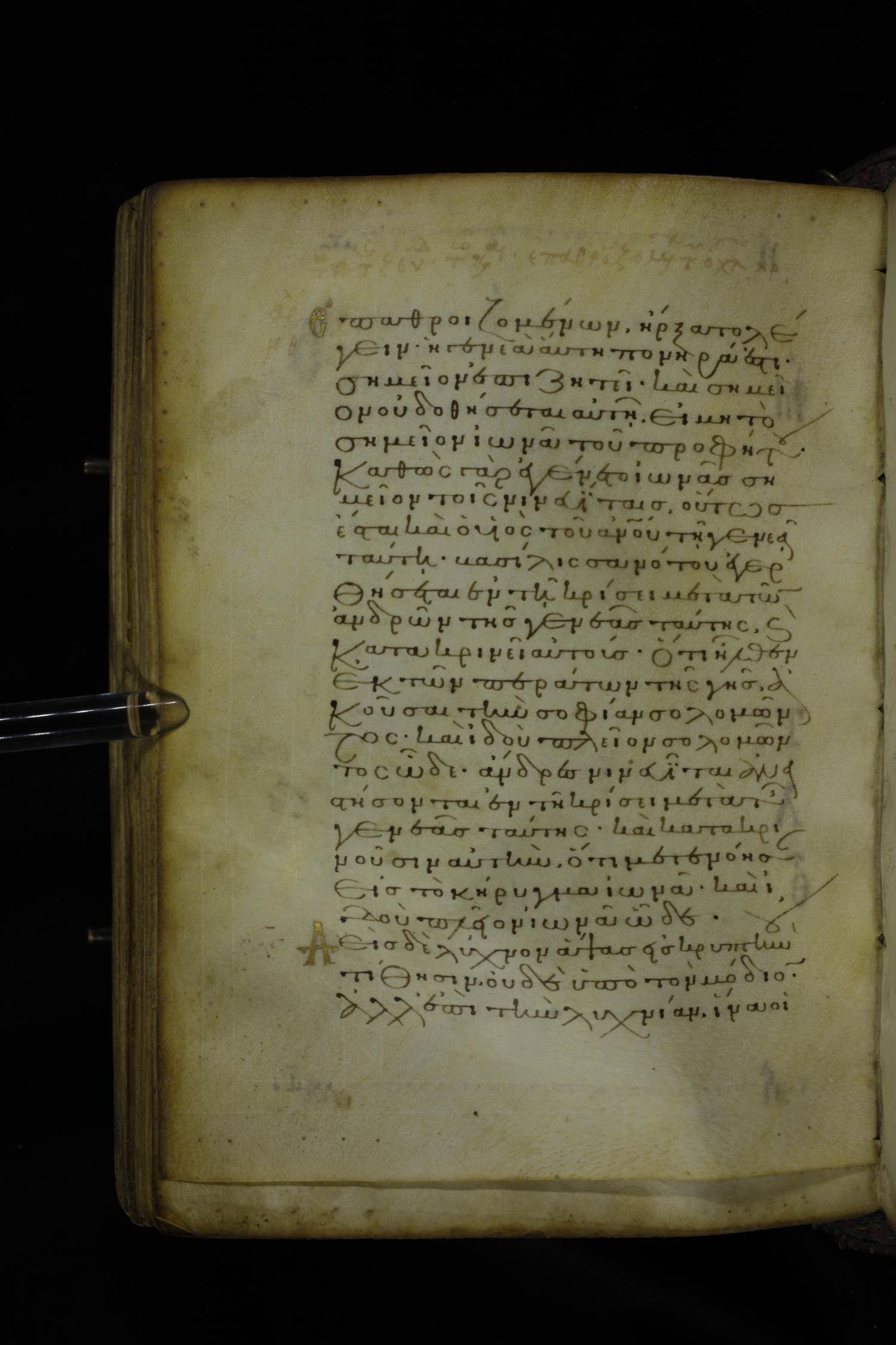 Twelfth century minuscule of the Gospel on parchment; 305 leaves, 1 column, 24 lines per column. Images were taken at the National Library of Greece in Athens.