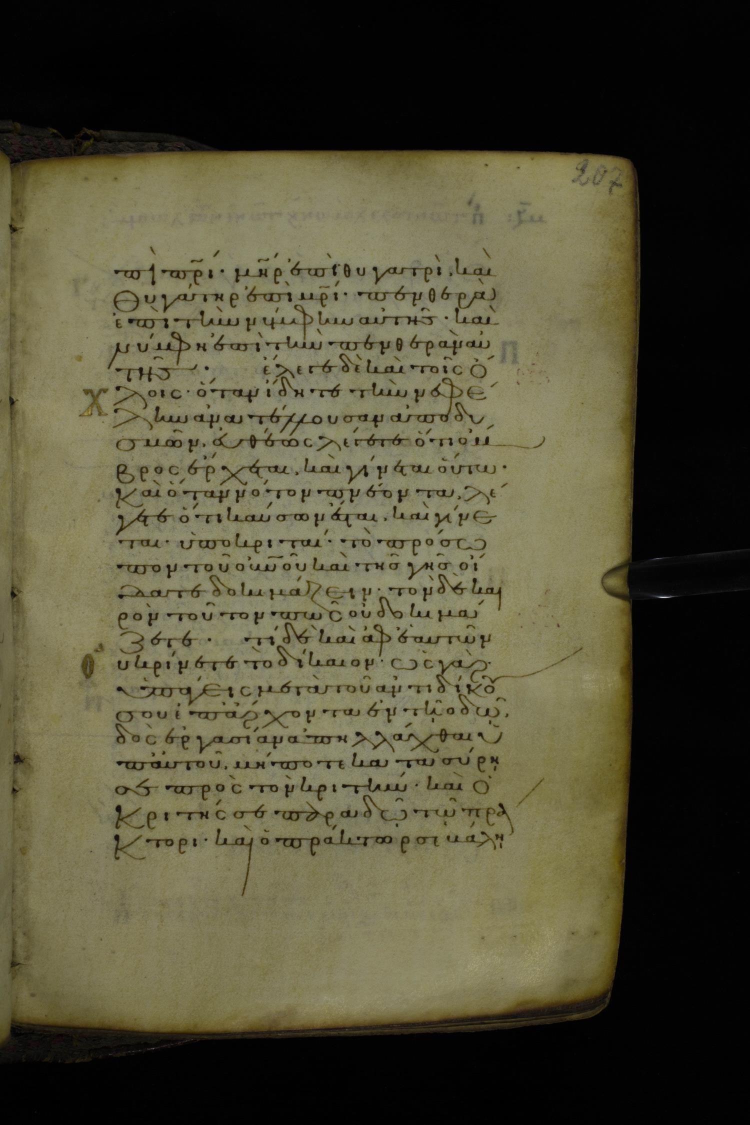 Twelfth century minuscule of the Gospel on parchment; 305 leaves, 1 column, 24 lines per column. Images were taken at the National Library of Greece in Athens.