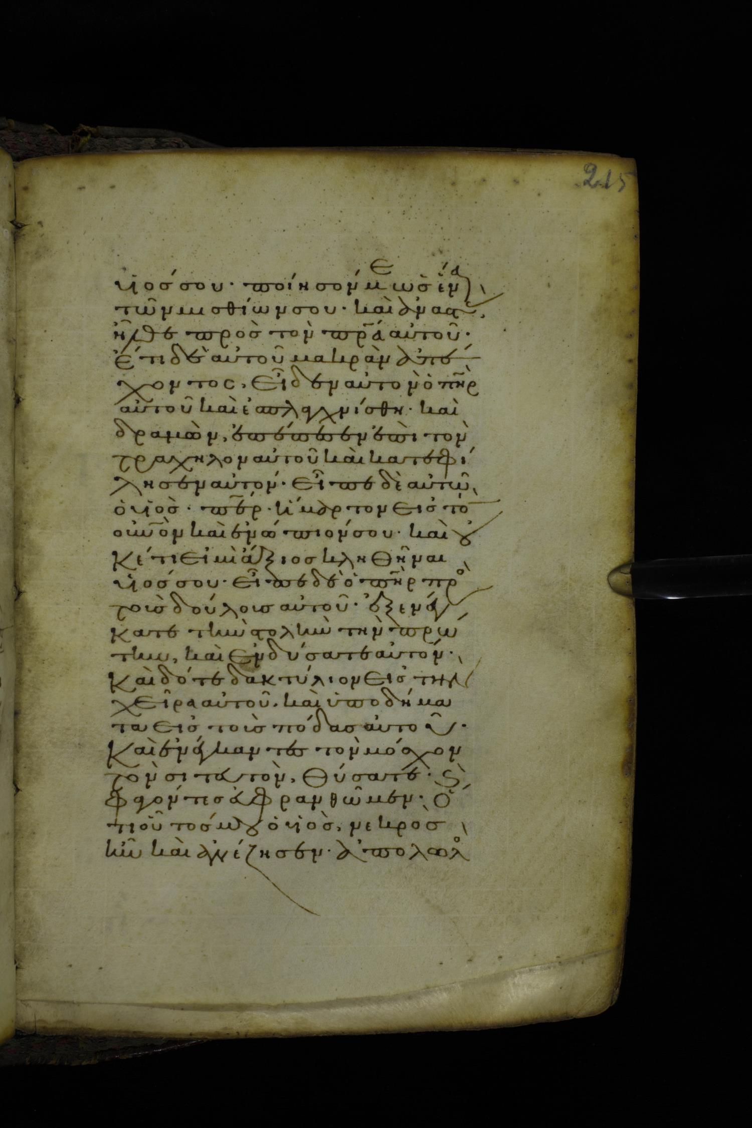 Twelfth century minuscule of the Gospel on parchment; 305 leaves, 1 column, 24 lines per column. Images were taken at the National Library of Greece in Athens.