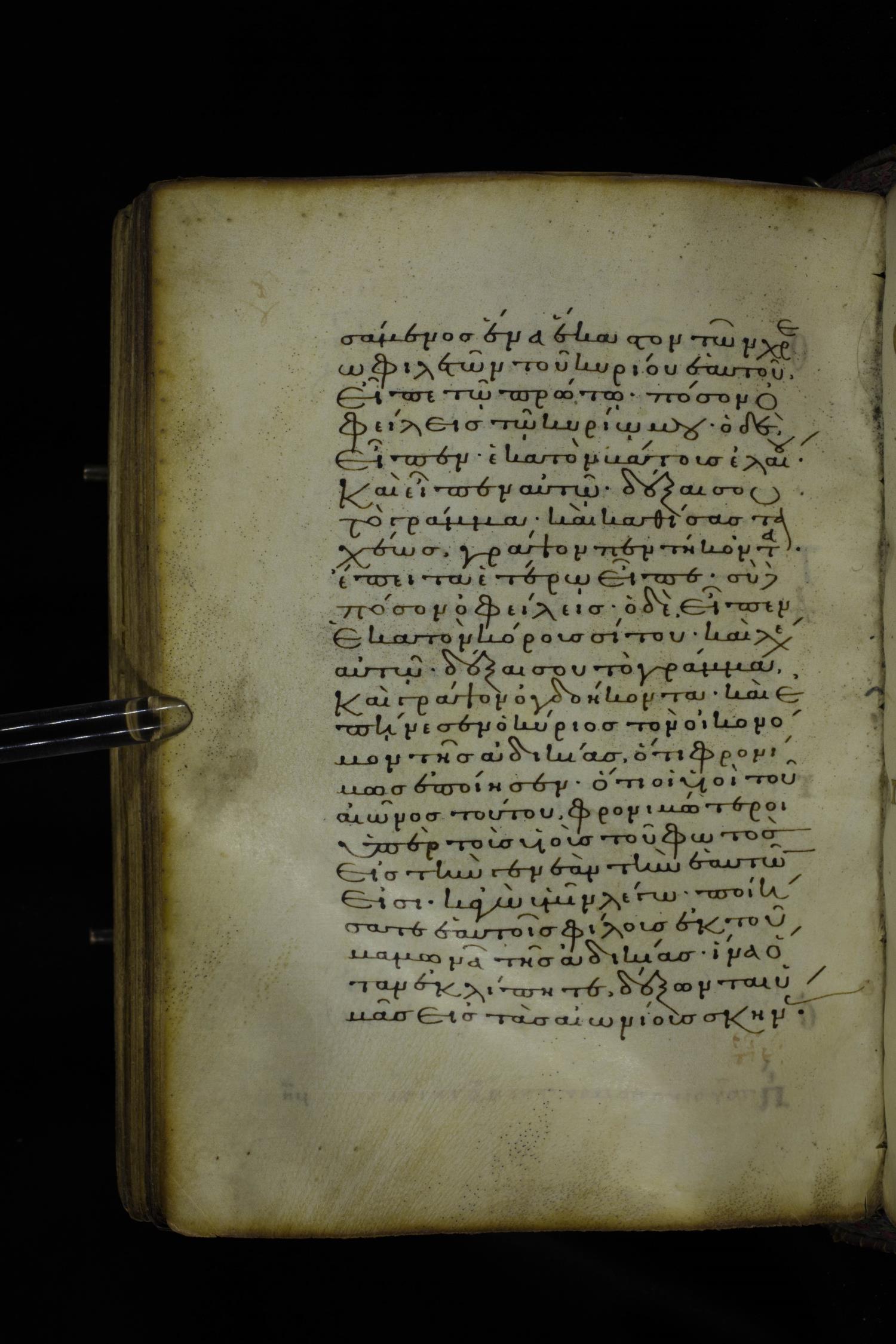 Twelfth century minuscule of the Gospel on parchment; 305 leaves, 1 column, 24 lines per column. Images were taken at the National Library of Greece in Athens.