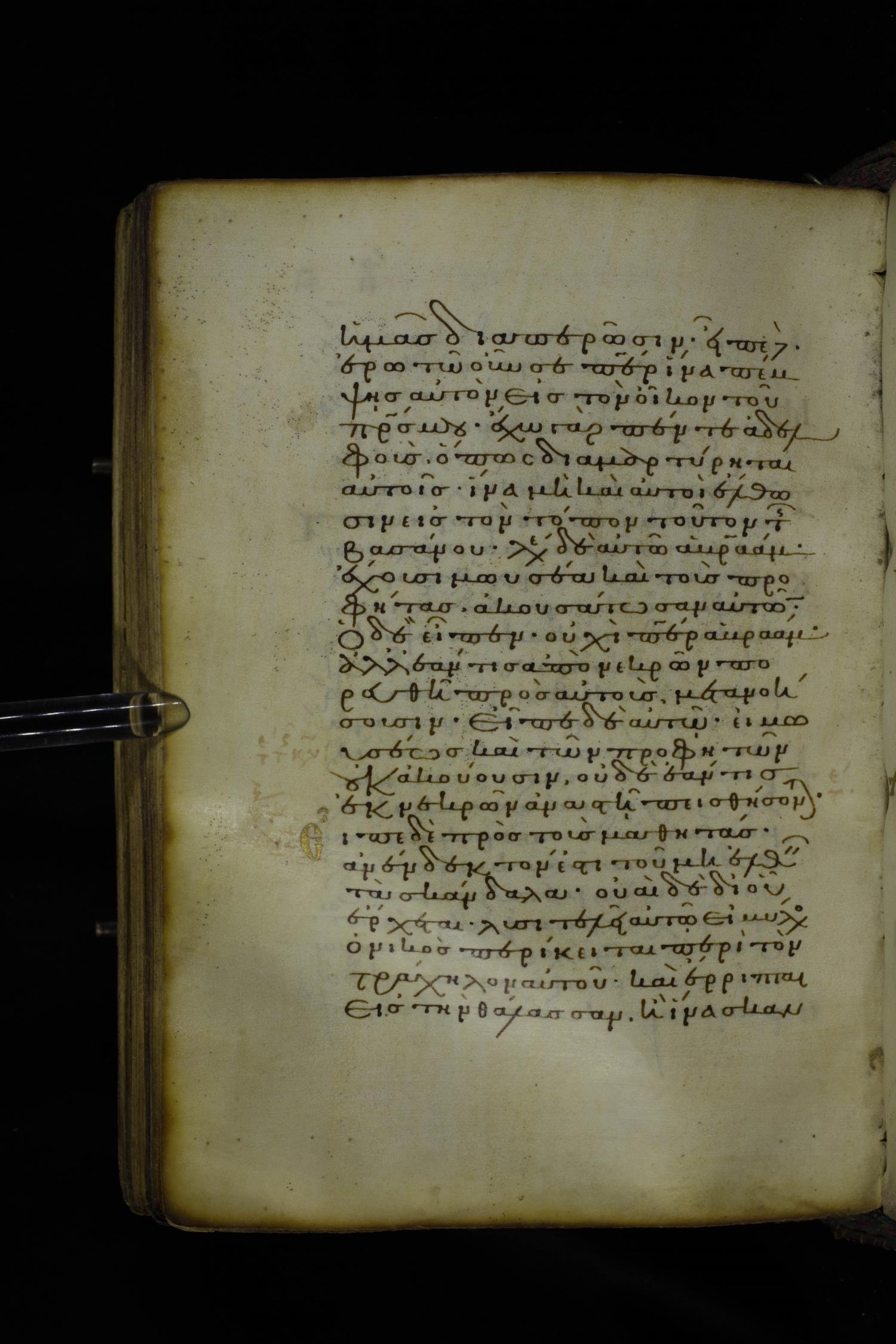 Twelfth century minuscule of the Gospel on parchment; 305 leaves, 1 column, 24 lines per column. Images were taken at the National Library of Greece in Athens.