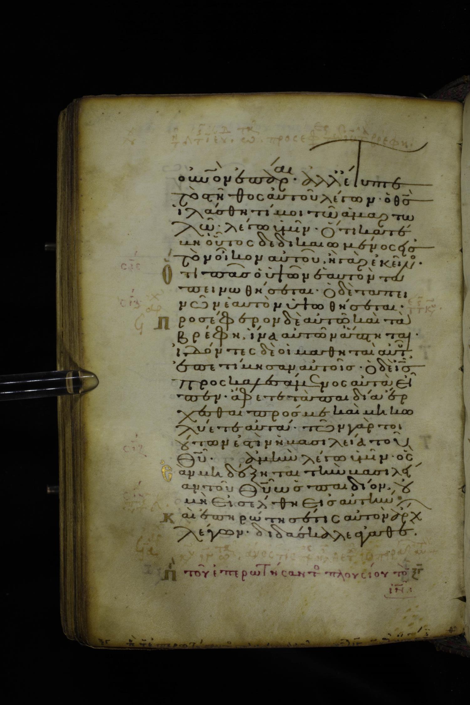 Twelfth century minuscule of the Gospel on parchment; 305 leaves, 1 column, 24 lines per column. Images were taken at the National Library of Greece in Athens.