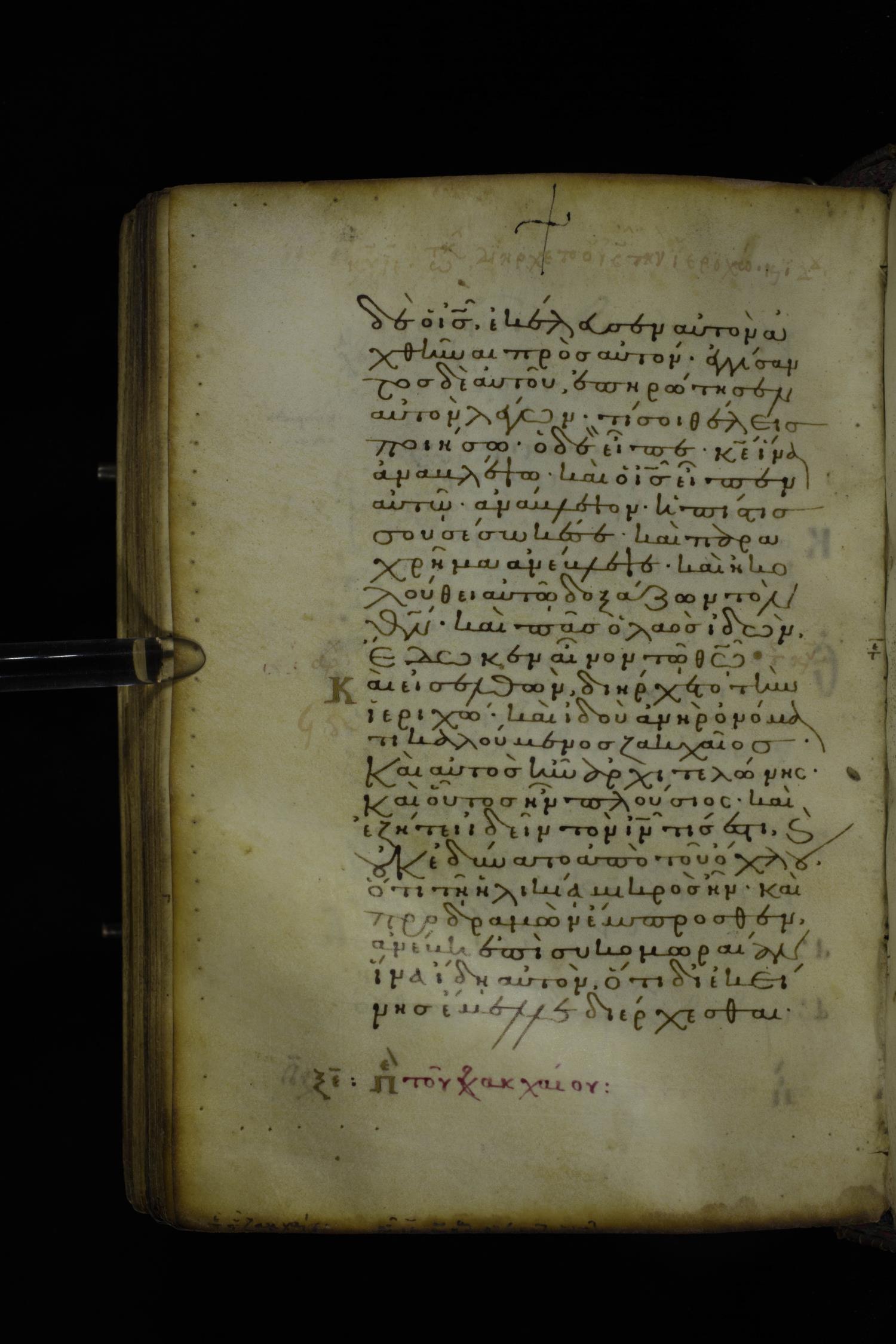 Twelfth century minuscule of the Gospel on parchment; 305 leaves, 1 column, 24 lines per column. Images were taken at the National Library of Greece in Athens.
