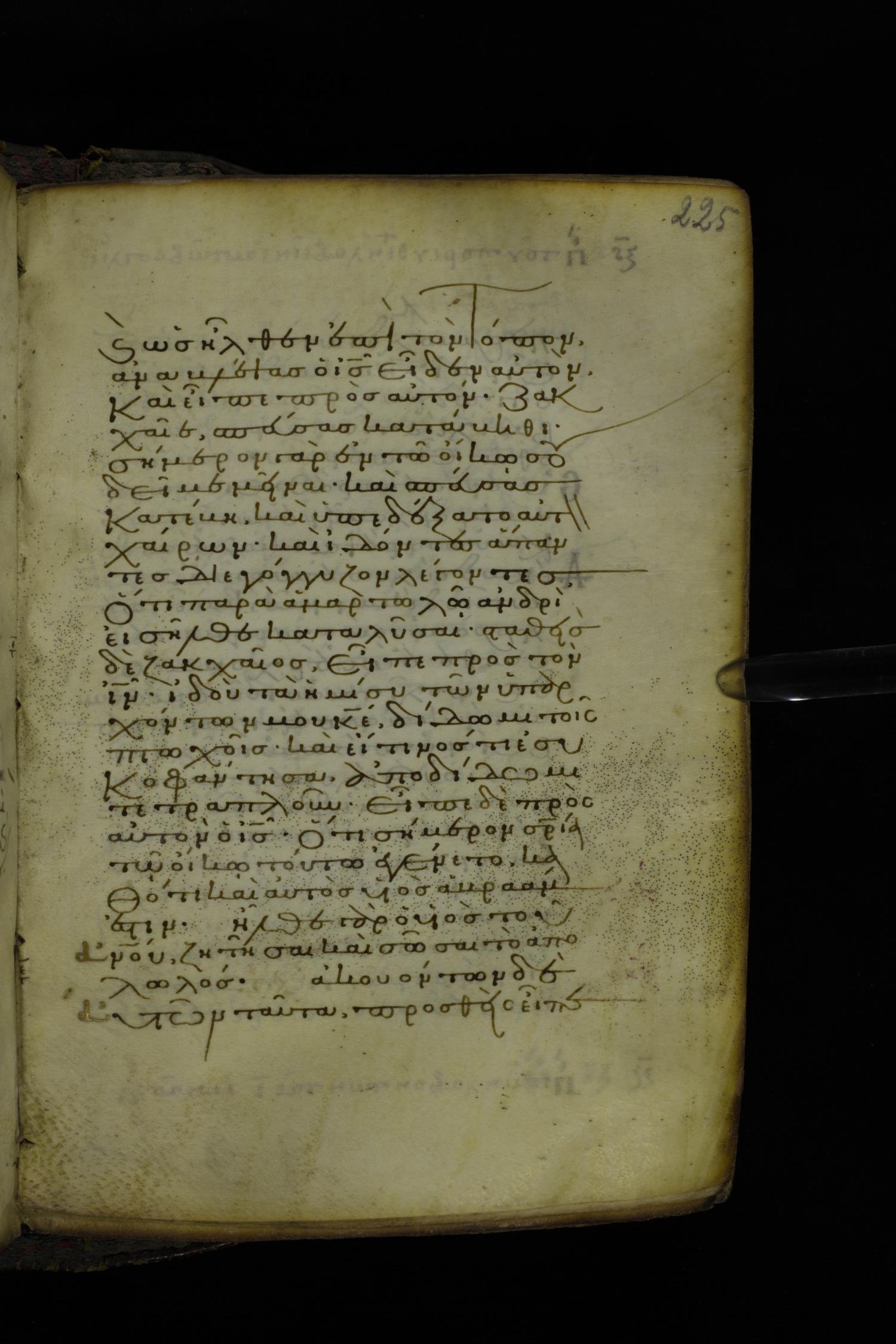 Twelfth century minuscule of the Gospel on parchment; 305 leaves, 1 column, 24 lines per column. Images were taken at the National Library of Greece in Athens.