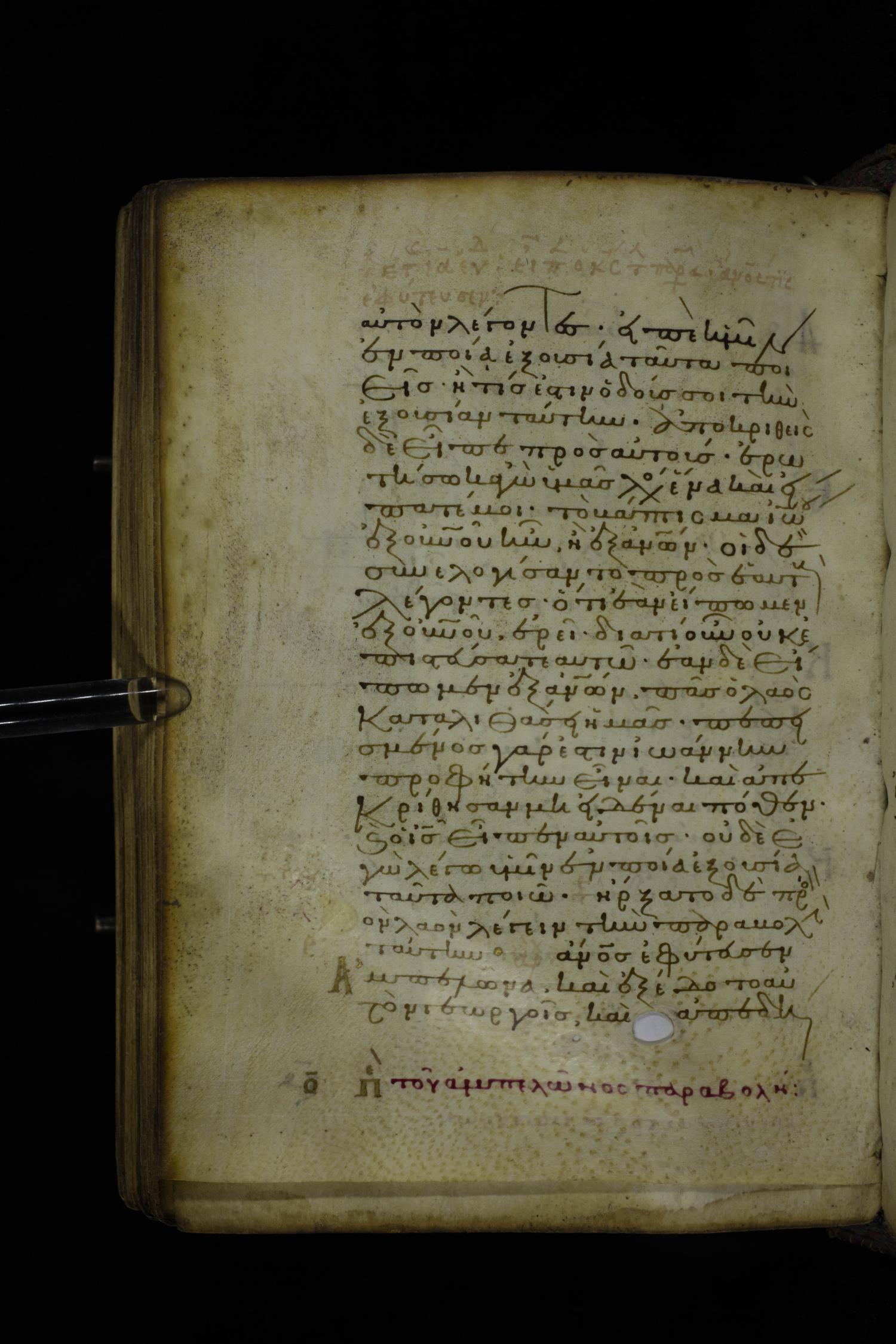Twelfth century minuscule of the Gospel on parchment; 305 leaves, 1 column, 24 lines per column. Images were taken at the National Library of Greece in Athens.