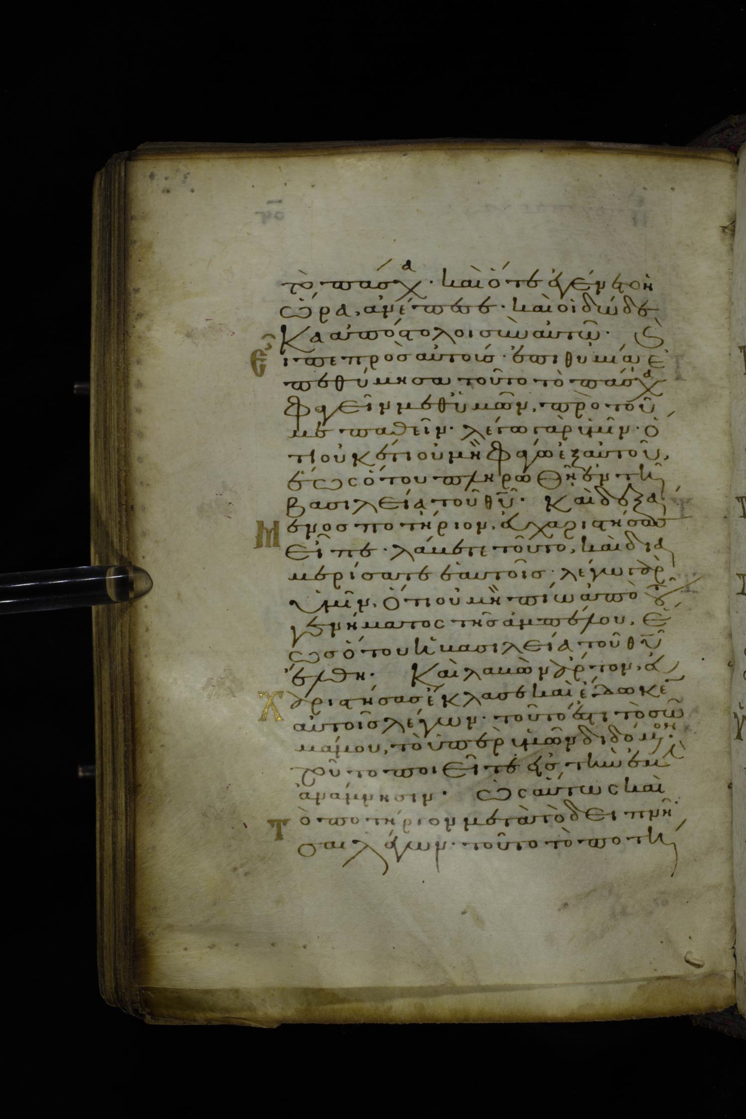 Twelfth century minuscule of the Gospel on parchment; 305 leaves, 1 column, 24 lines per column. Images were taken at the National Library of Greece in Athens.