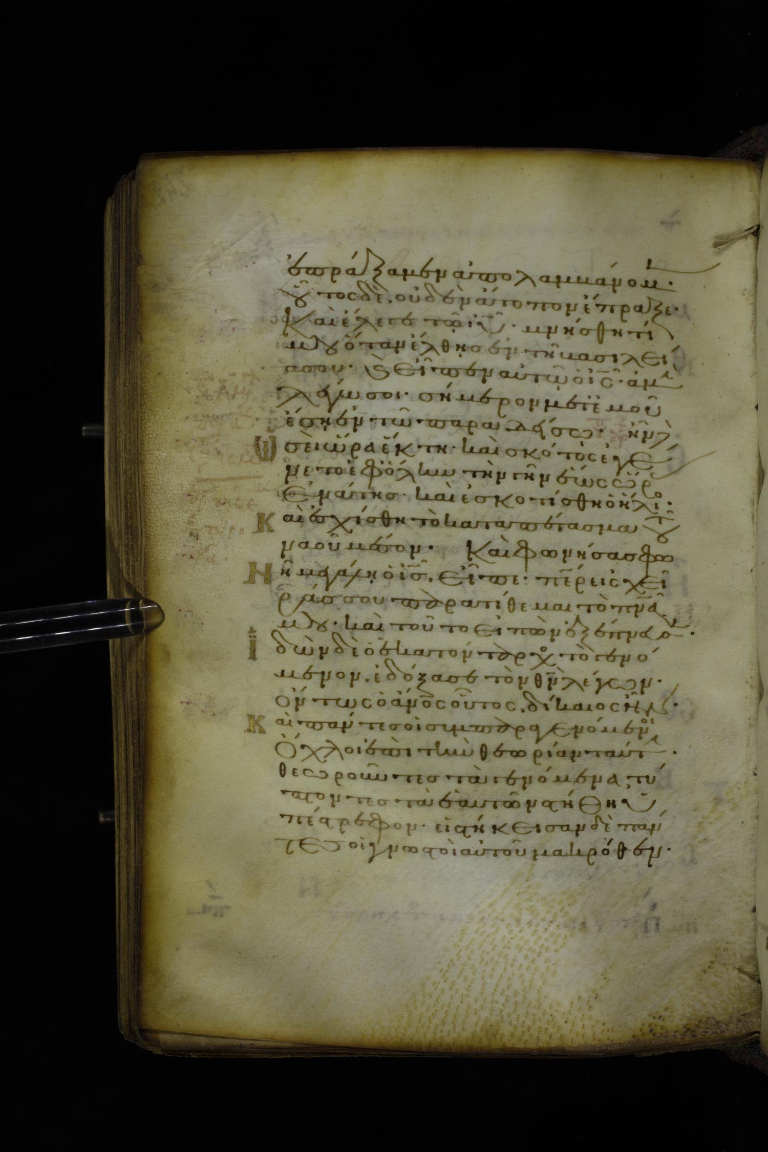 Twelfth century minuscule of the Gospel on parchment; 305 leaves, 1 column, 24 lines per column. Images were taken at the National Library of Greece in Athens.
