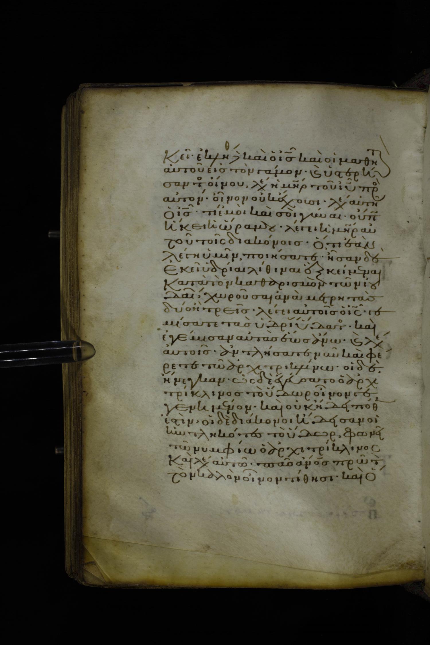 Twelfth century minuscule of the Gospel on parchment; 305 leaves, 1 column, 24 lines per column. Images were taken at the National Library of Greece in Athens.