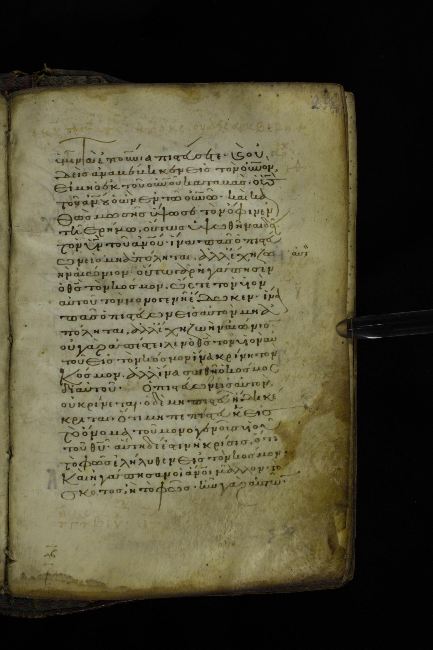 Twelfth century minuscule of the Gospel on parchment; 305 leaves, 1 column, 24 lines per column. Images were taken at the National Library of Greece in Athens.