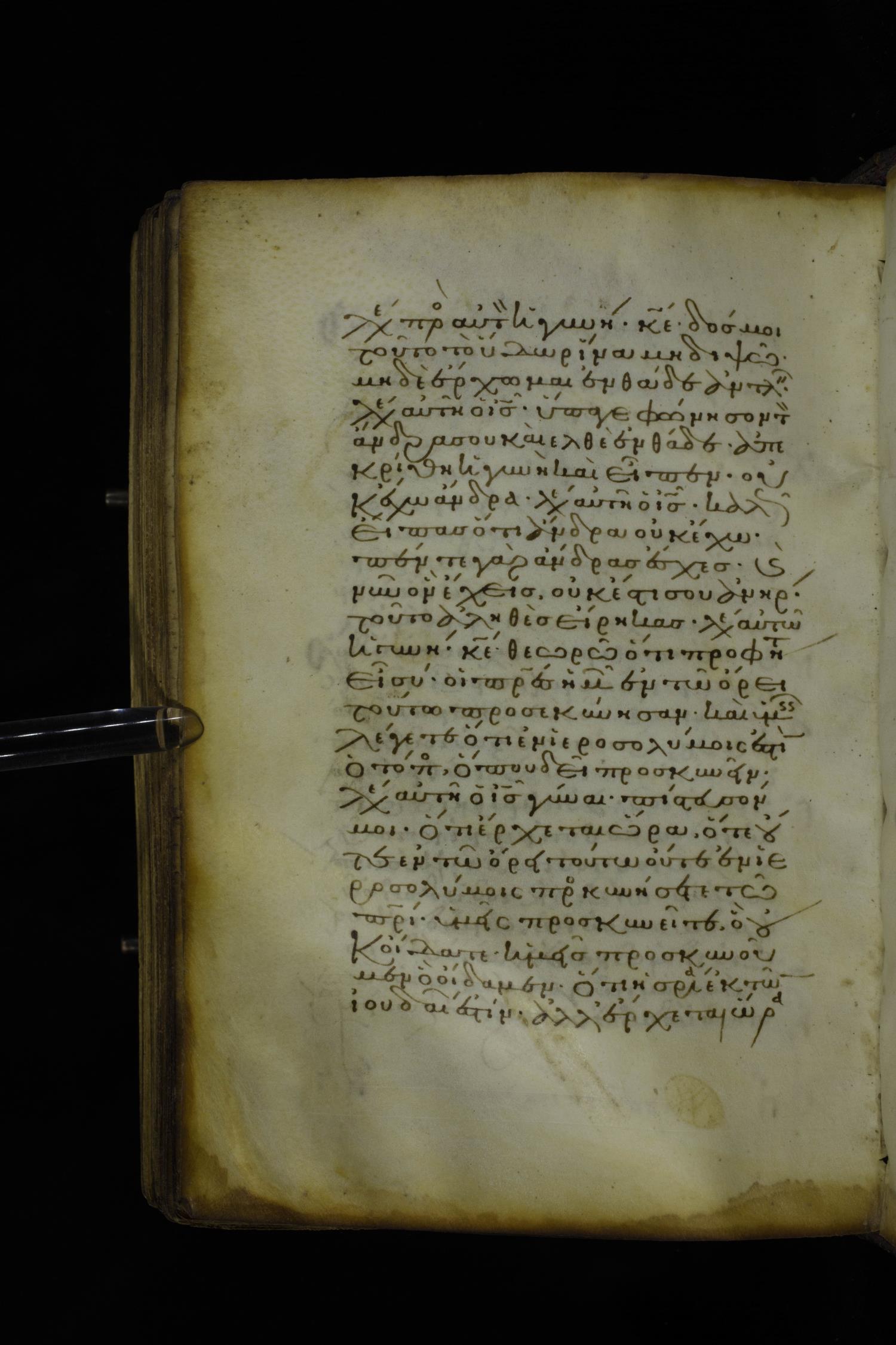 Twelfth century minuscule of the Gospel on parchment; 305 leaves, 1 column, 24 lines per column. Images were taken at the National Library of Greece in Athens.