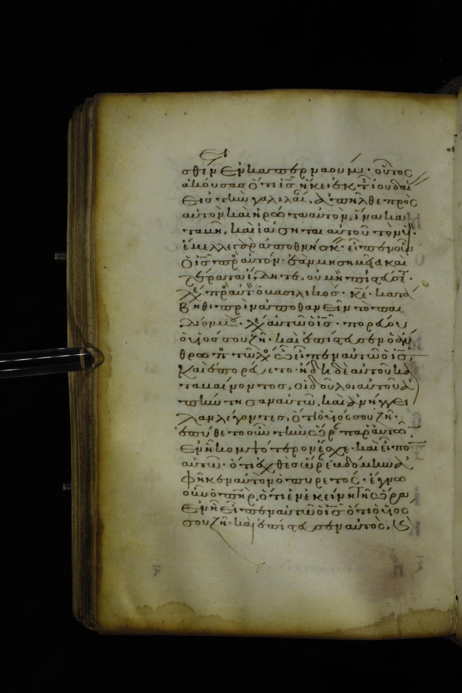 Twelfth century minuscule of the Gospel on parchment; 305 leaves, 1 column, 24 lines per column. Images were taken at the National Library of Greece in Athens.